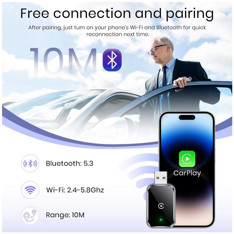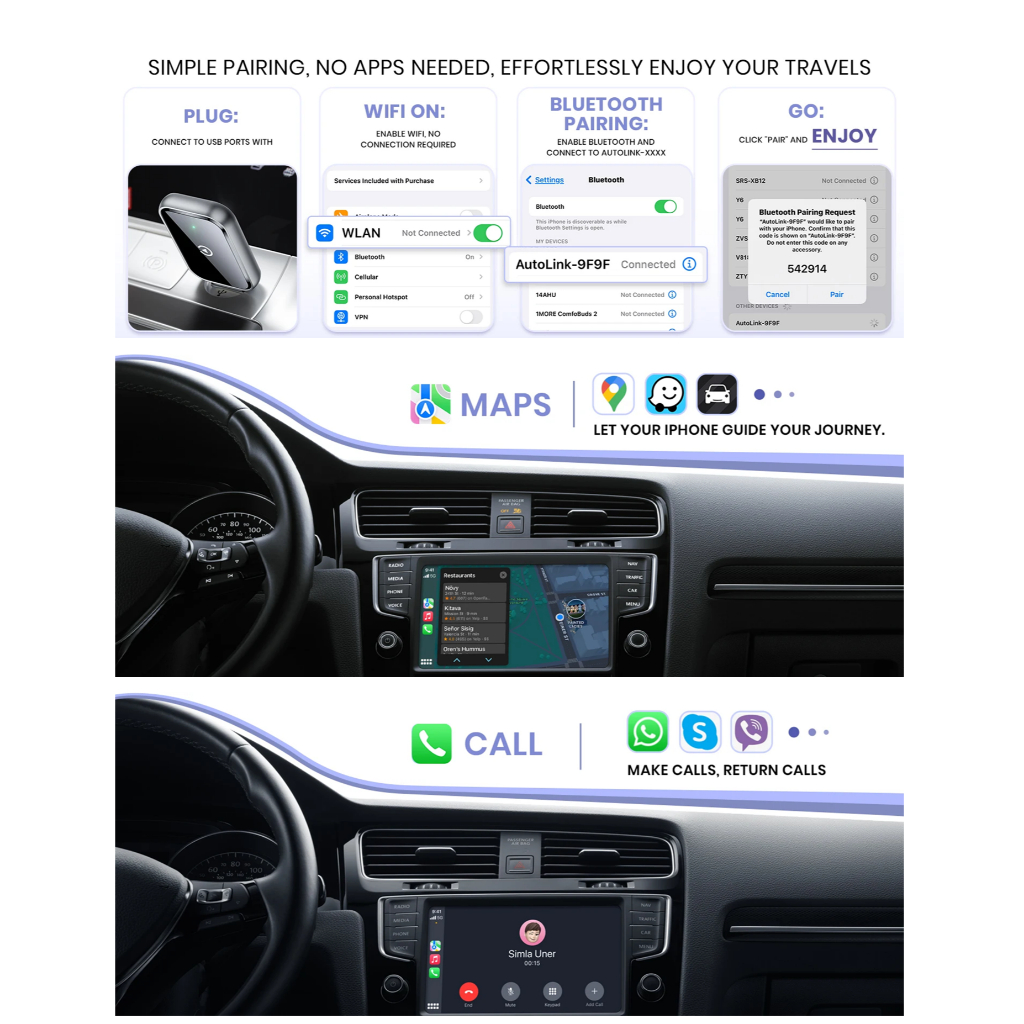 2 in 1 Wireless Apple CarPlay Dongle Receiver Adapter Android Auto Dongle Receiver Adapter For Car Apple Player with USB Plug and Play CarPlay Adapter