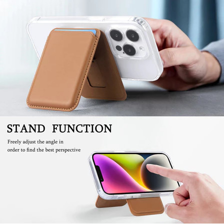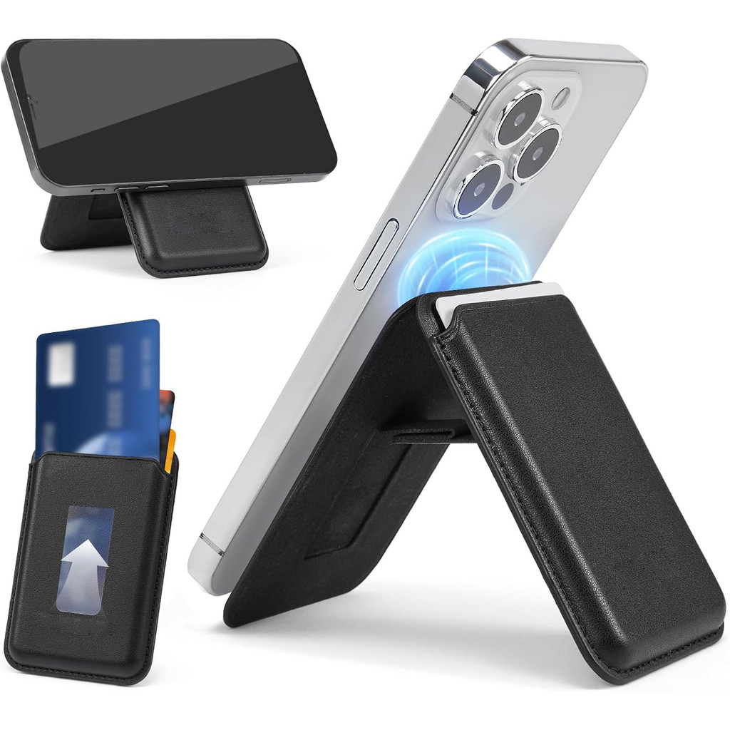 2 in 1 iphone Magnetic Card Holder Phone Holder Stand Muti-functional MagSafe Card Holder Leather Magnetic Wallet Bag Hide Stand Card Bag Stand for iPhone 16/15/14/13/12 Series Phone Accessories