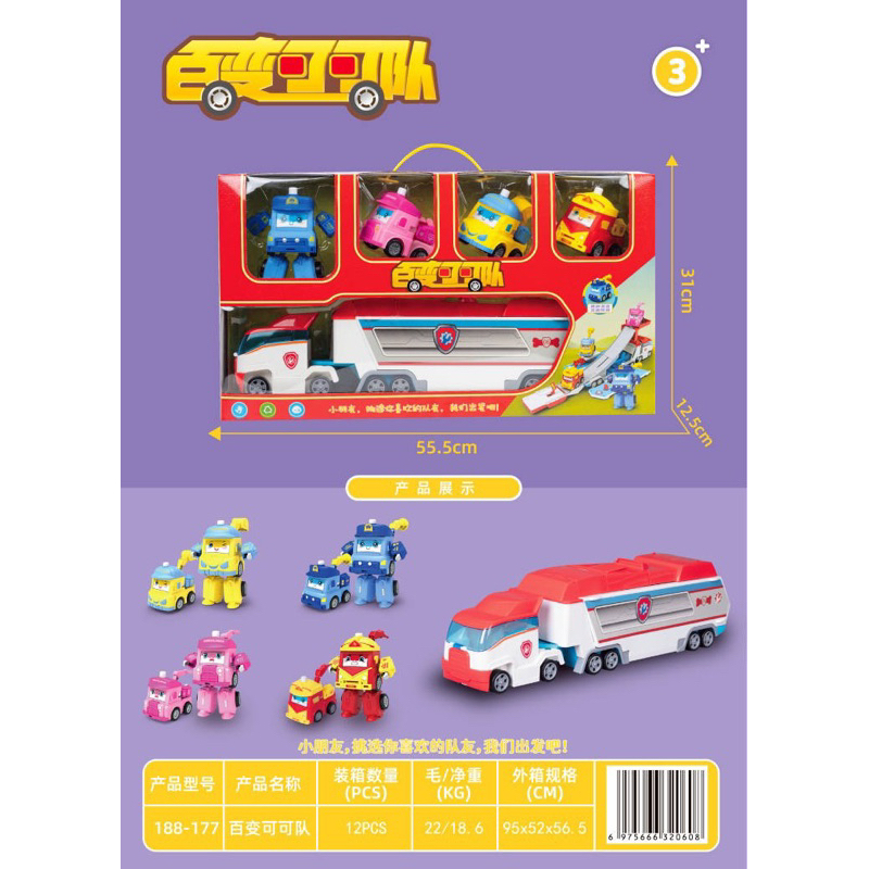 2-in-1 transforming Robocar Poli vehicle squad toy box