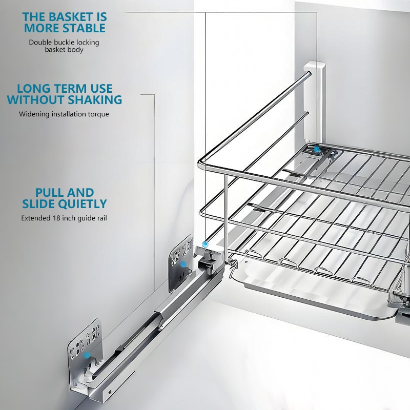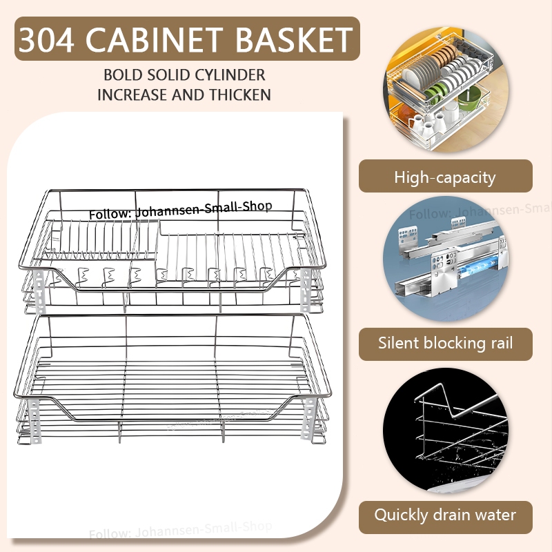 2 in1Pull out kitchen Cabinet 304 stainless steel Pull out Kitchen Cabinet Organization Dishes rack