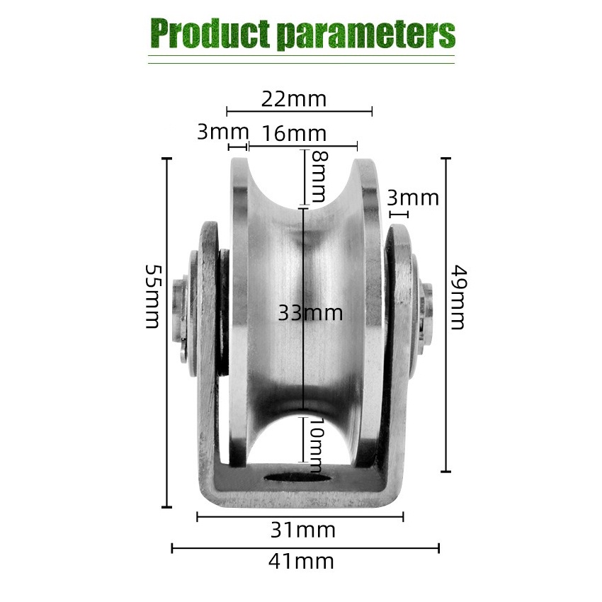 2 inch U Type Pulley Roller Wheel 304 Stainless Steel Bearing For Material Handling