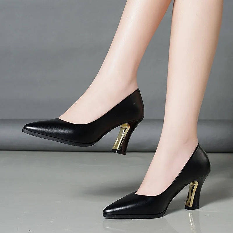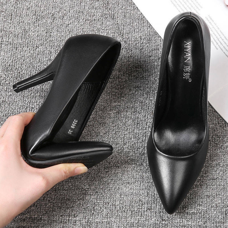 2 inches heels School shoes with heels Block heels professional soft soles work shoes black leather shoes female