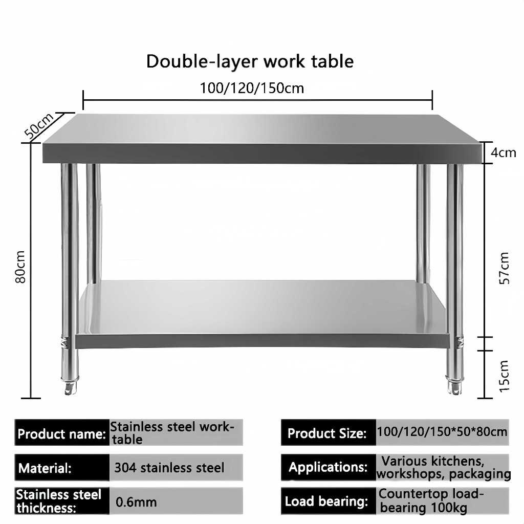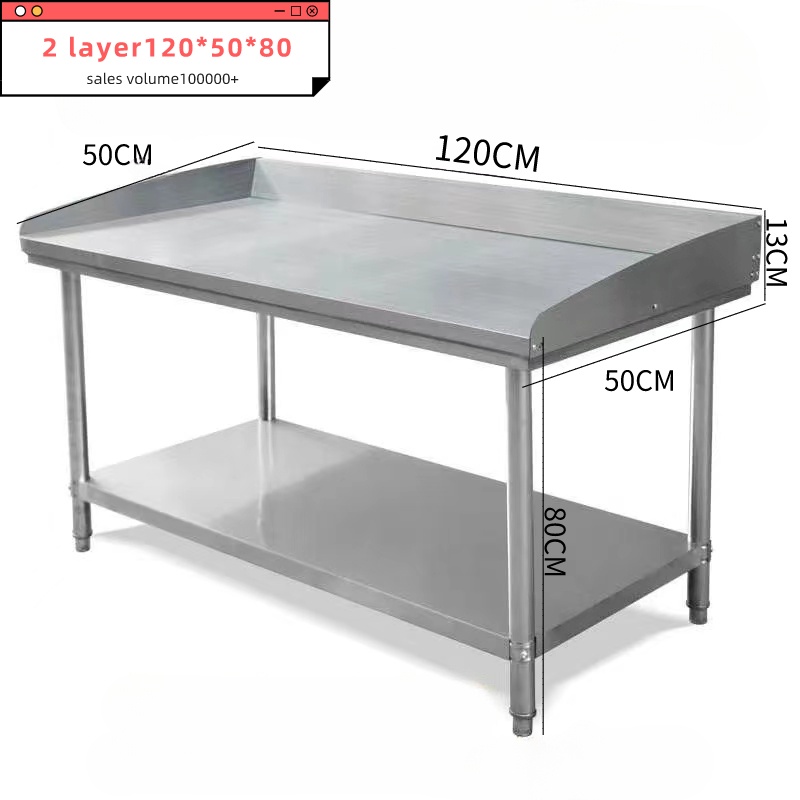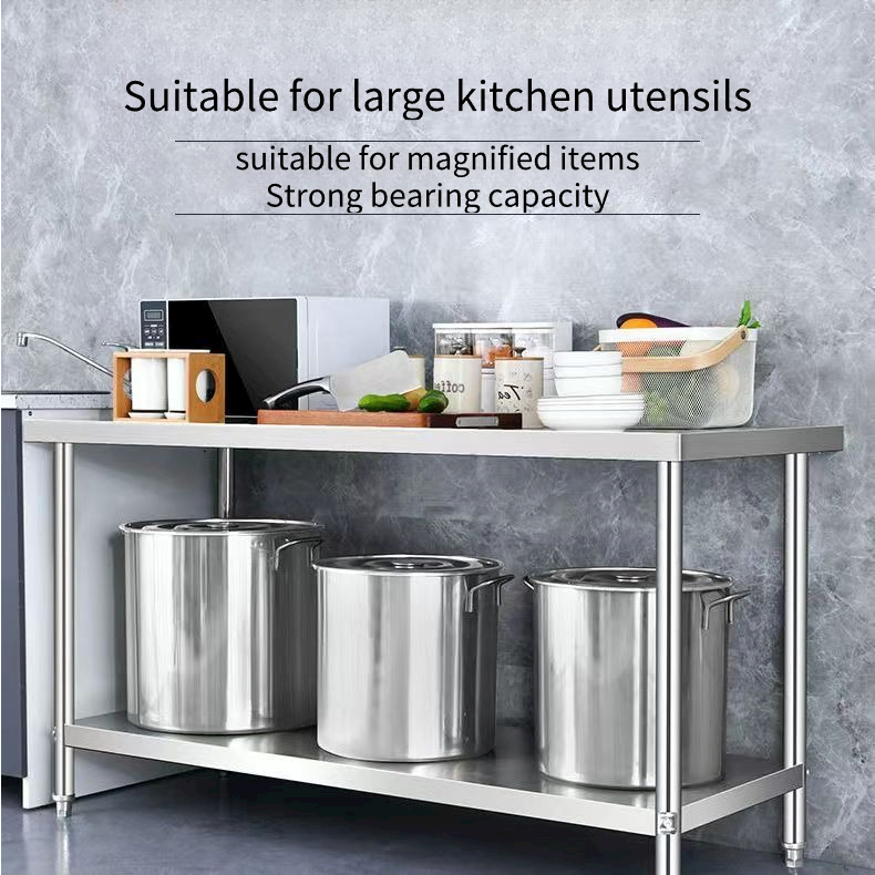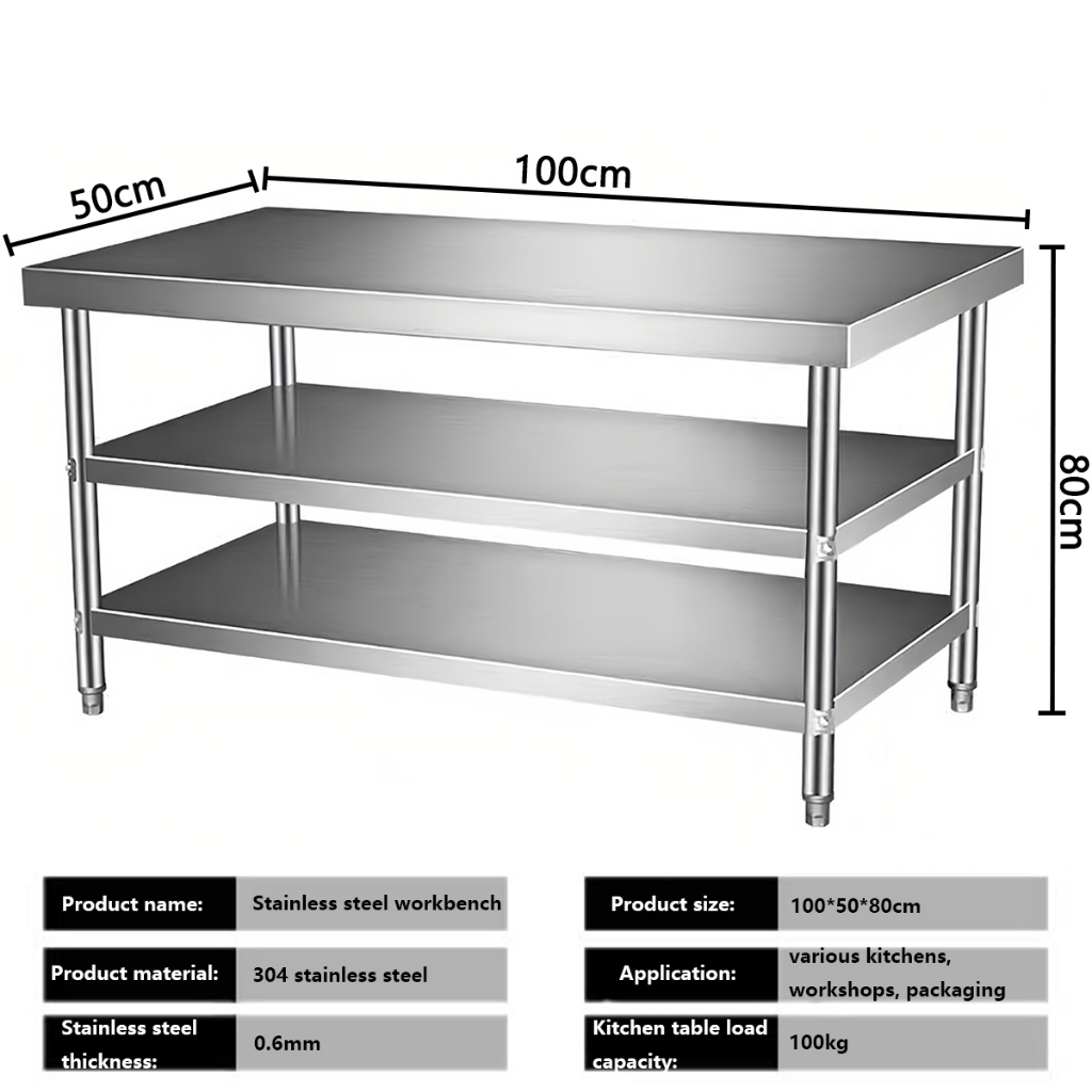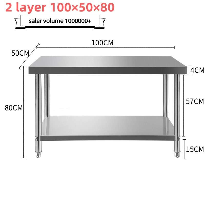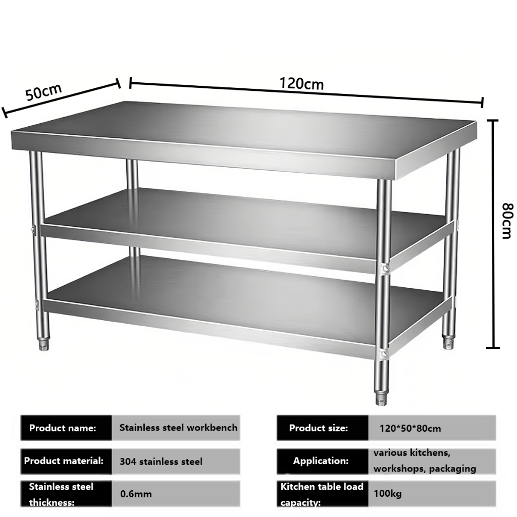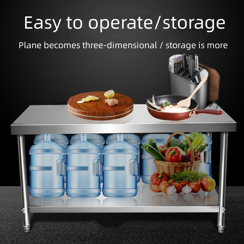 2-layer Table 304 Stainless Steel Worktable Easy to clean Thicken Storage table Operation console