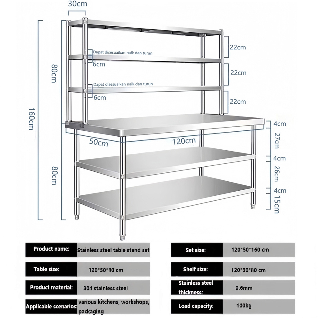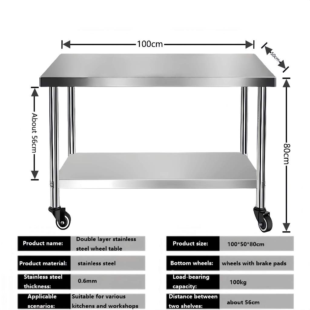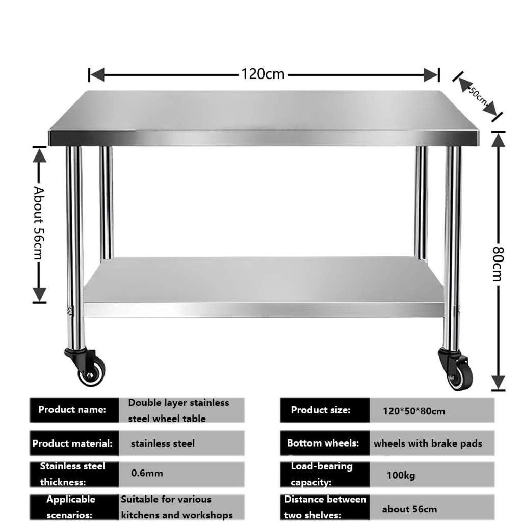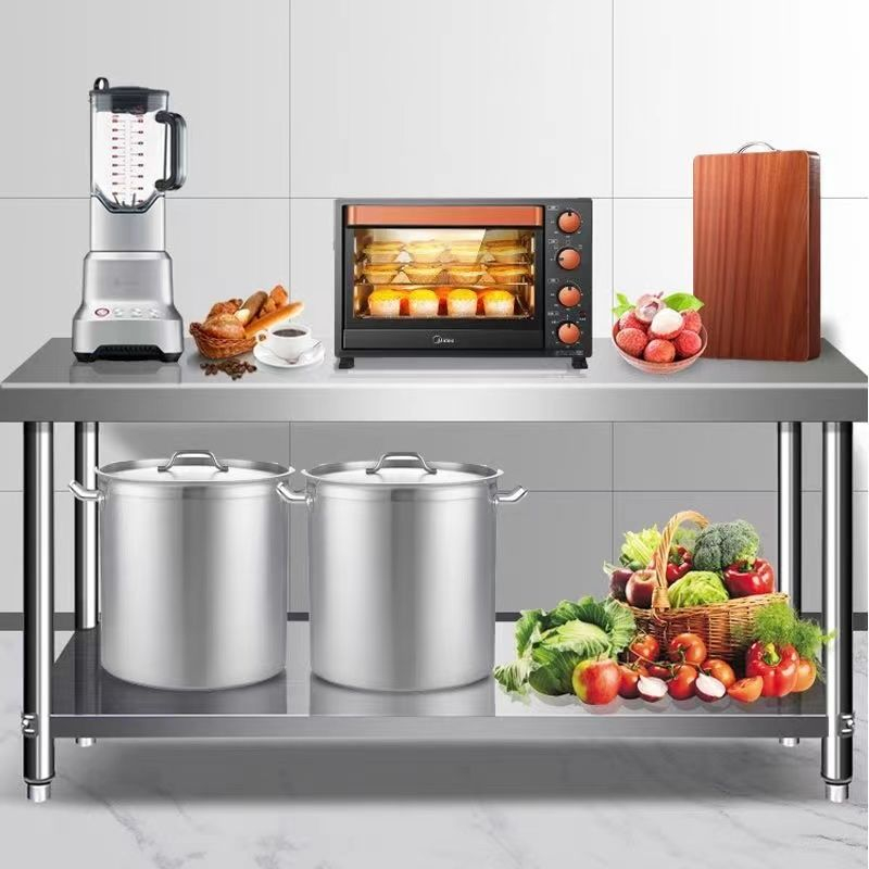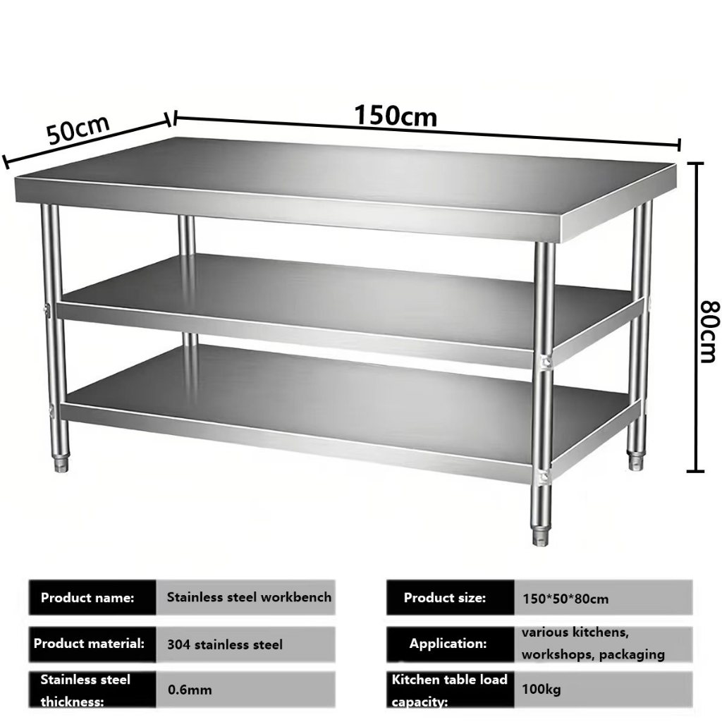2-layer Table 304 Stainless Steel Worktable Easy to clean Thicken Storage table Operation console
