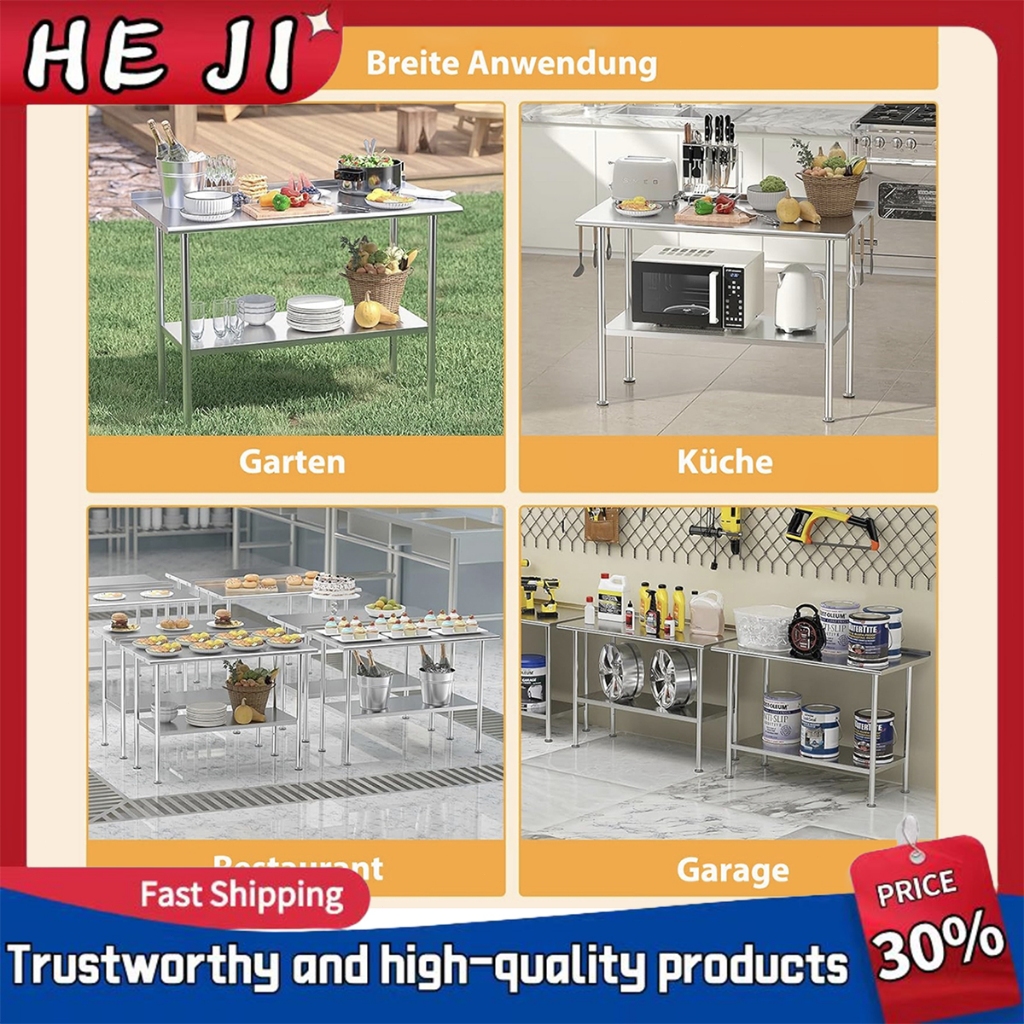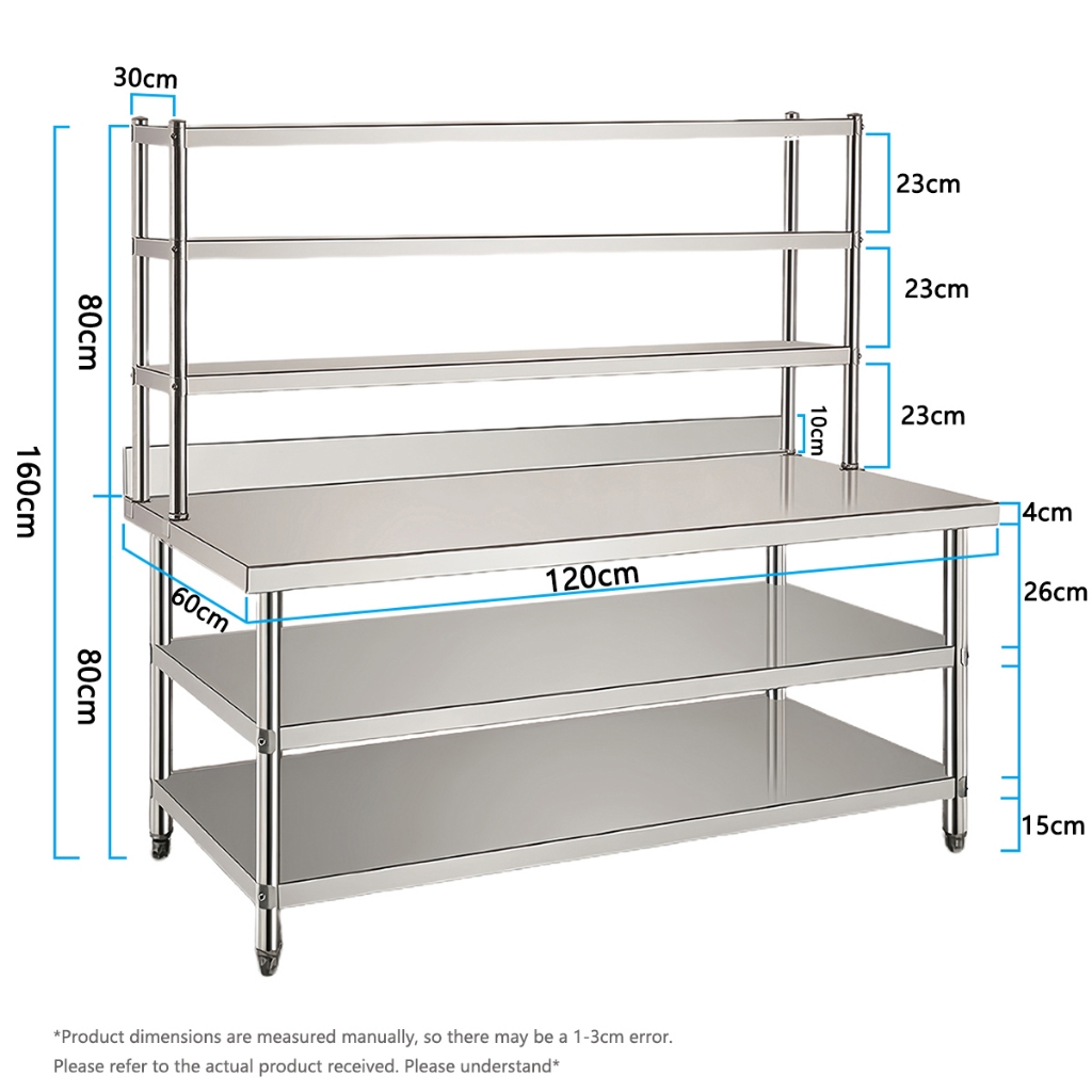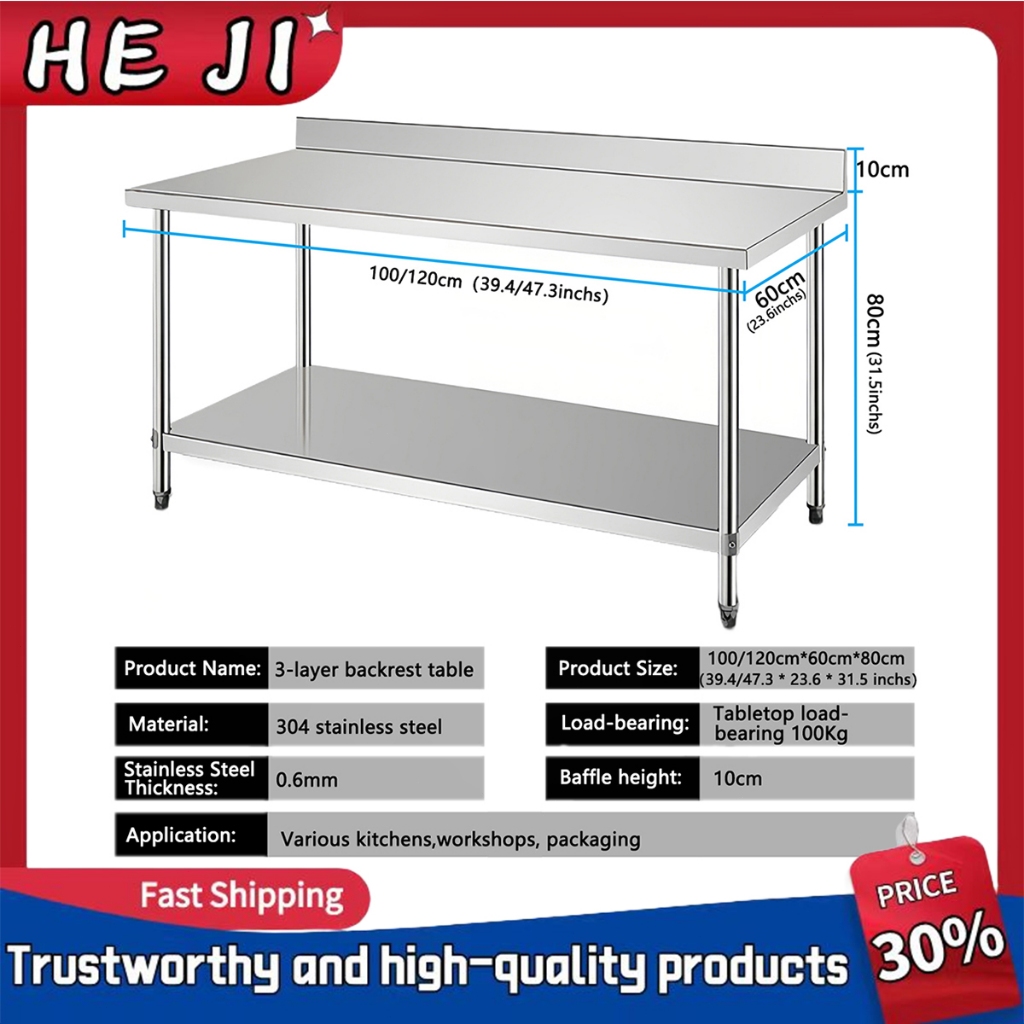 2-layer Table for Kitchen rack 304 stainless steel 3-layer Storage table Easy to clean Workbench
