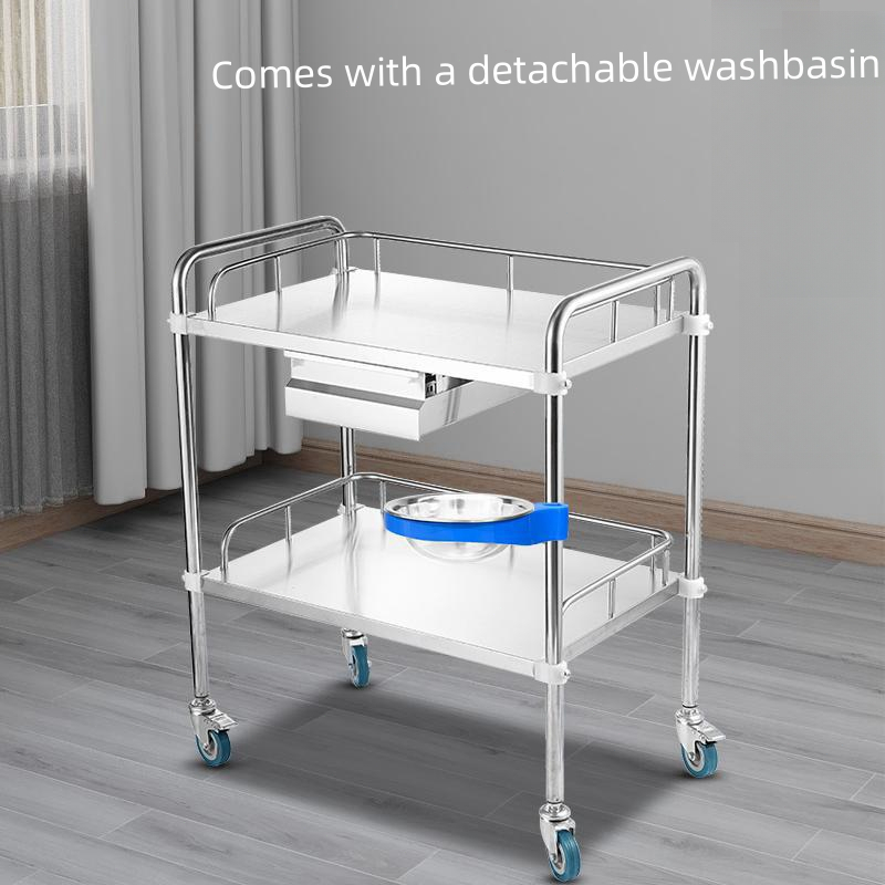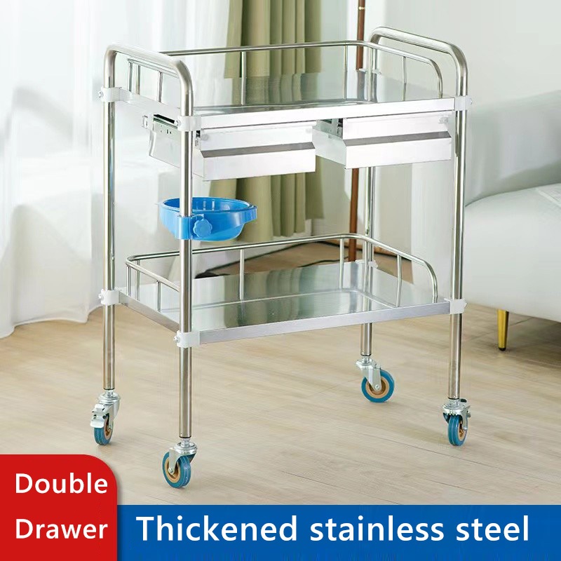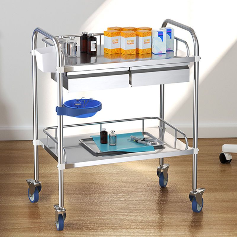 2 Layer Trolley Cart Stainless Utility Kitchen Food Cart Liquor Trolley Hotel Service Push Cart