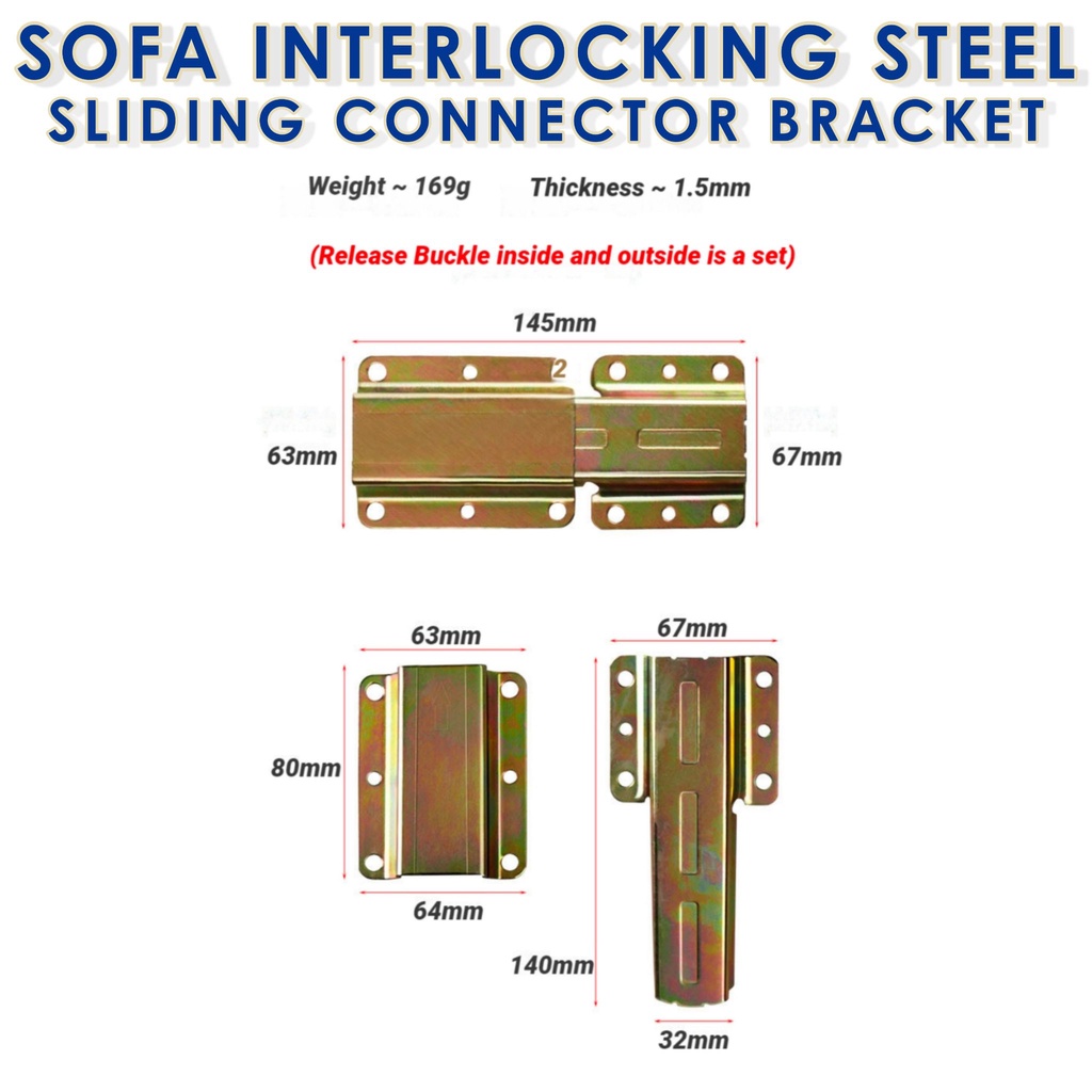 2 pairs Sofa Interlocking Steel Sofa Sliding Connector Bracket, Sofa Connector