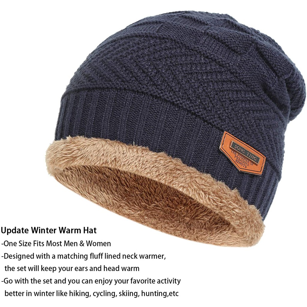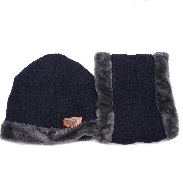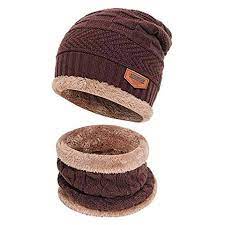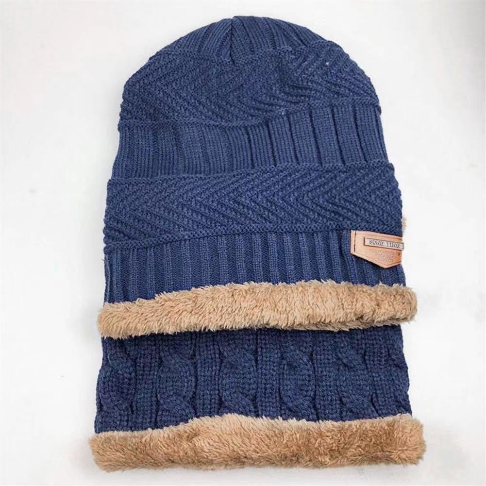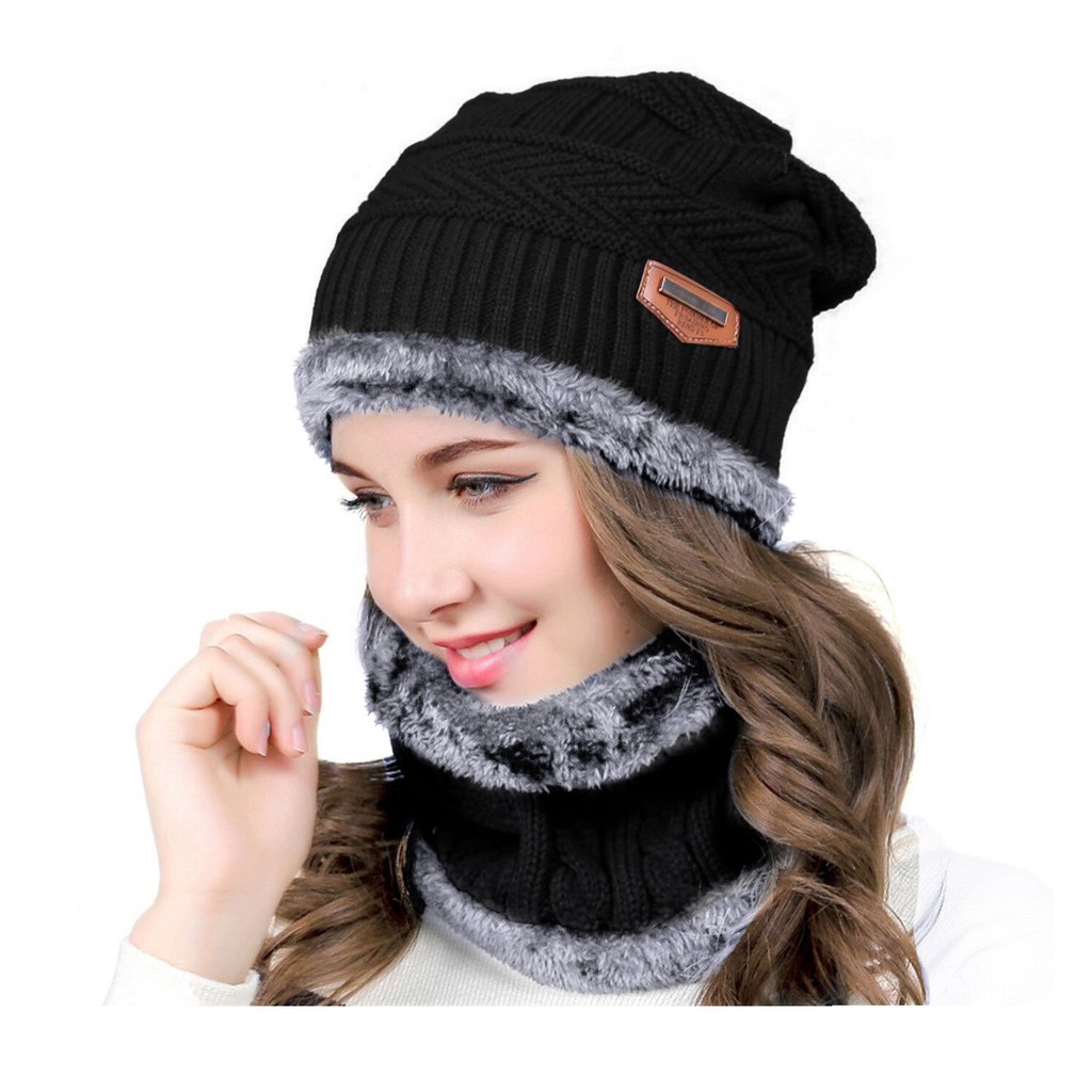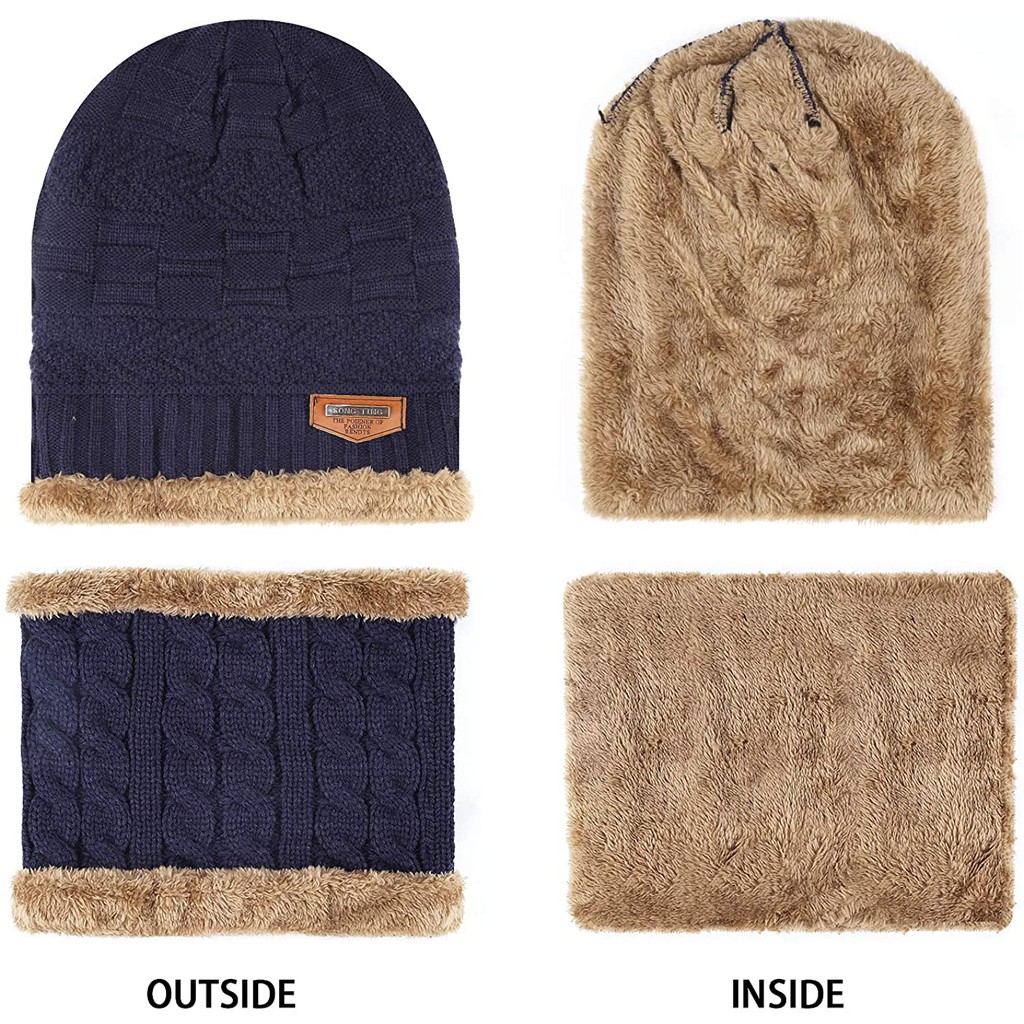 2 pcs Winter Beanie Hat scarf Set warm Knit Hat thick Fleece Lined Winter Cap Scarves for men and wo