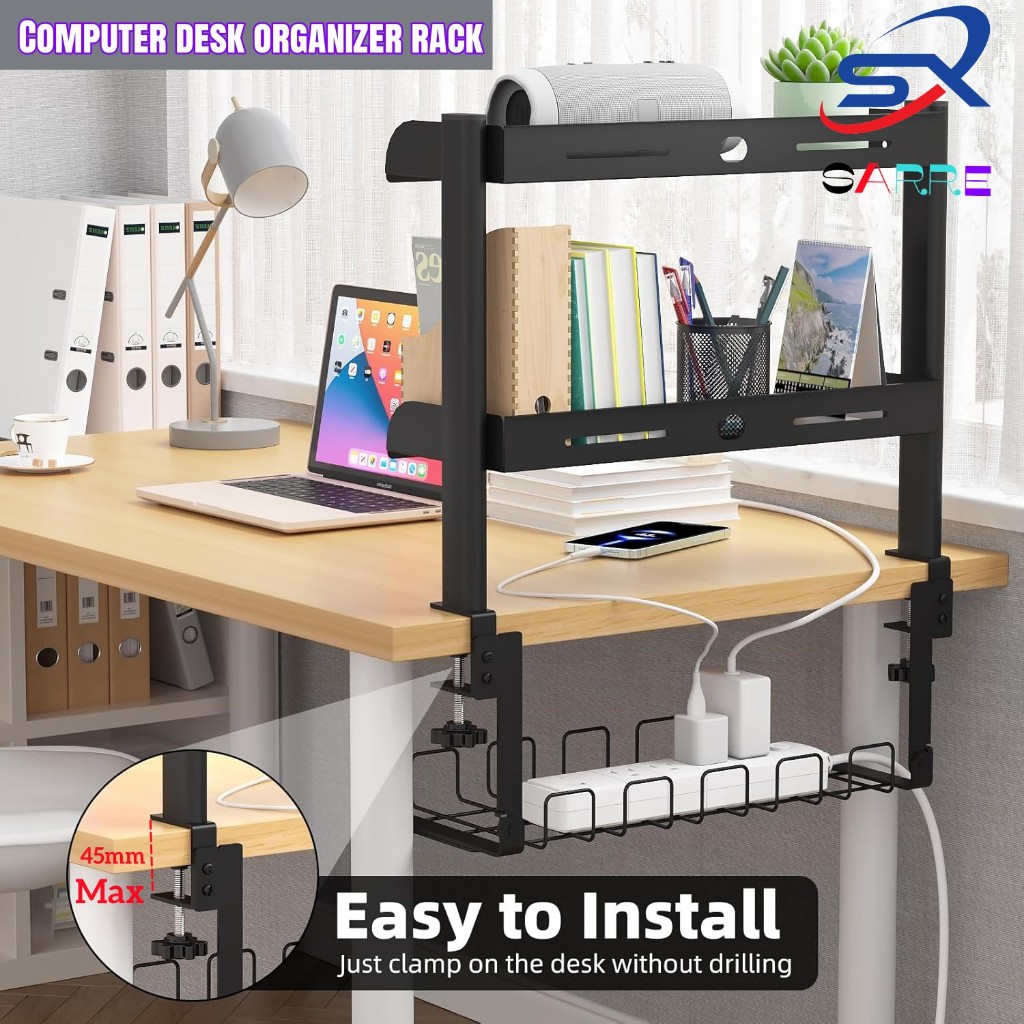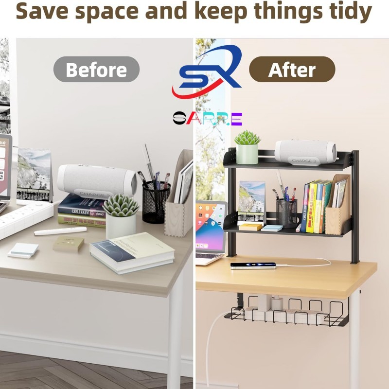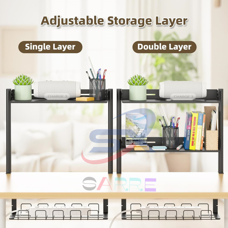 2-story adjustable storage desk extension rack Computer desk storage rack Cable management tray with