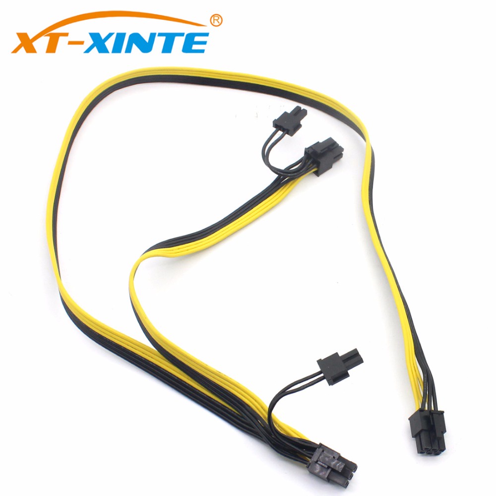 2 x Power Supply Cable Modular PSU 6Pin to Double 6+2P Cable Graphics Card Module 6P to Dual 8p Splitter Ribbon Cable 18AWG 70+30cm
