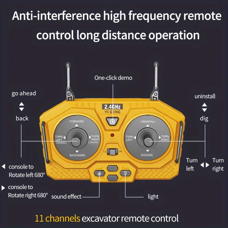 2.4G Remote Control, High Tech 11 Channels RC Excavator Dump Trucks Bulldozer Alloy Plastic