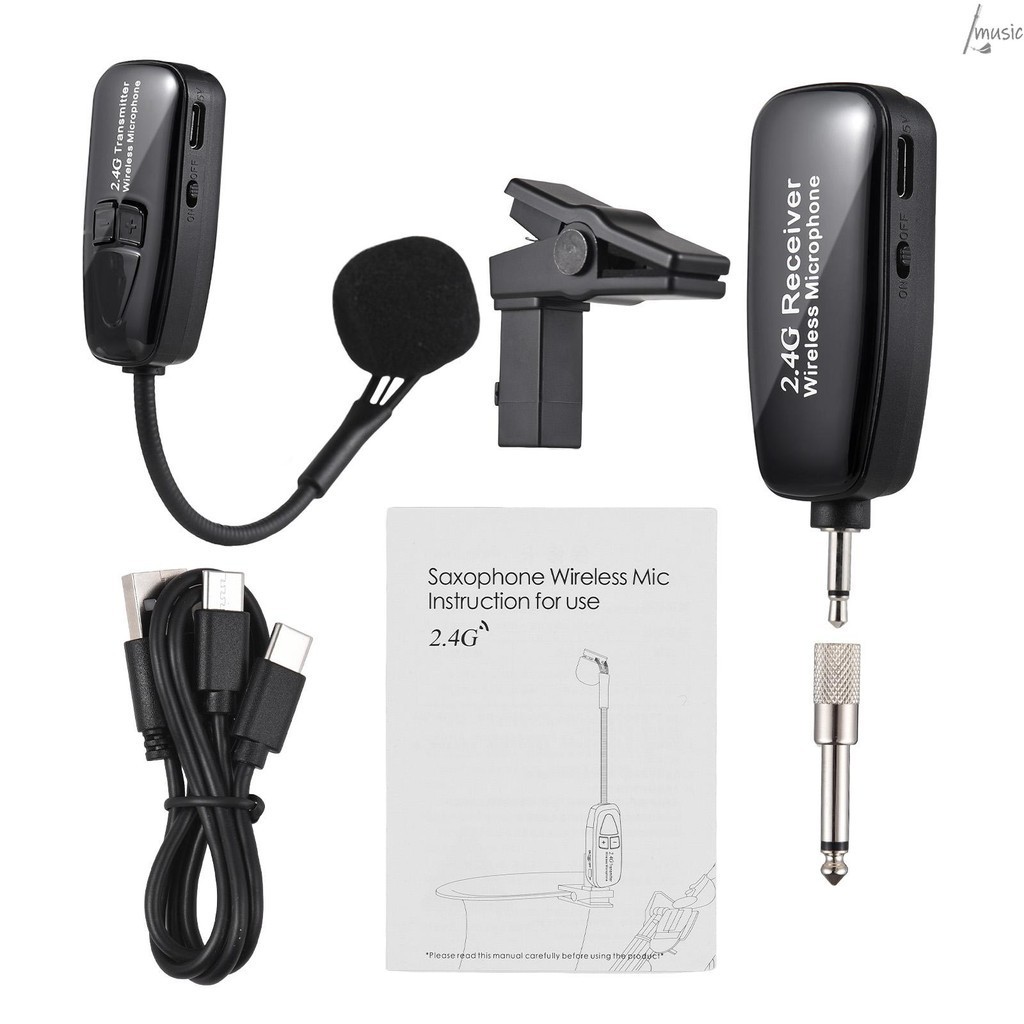 2.4G Saxophone Wireless Microphone Receiver Set Noise Reduction Outdoor Professional Stage Performances Intelligent Noise Reduction Pickup Microphone Plug and Play Portable Handhel