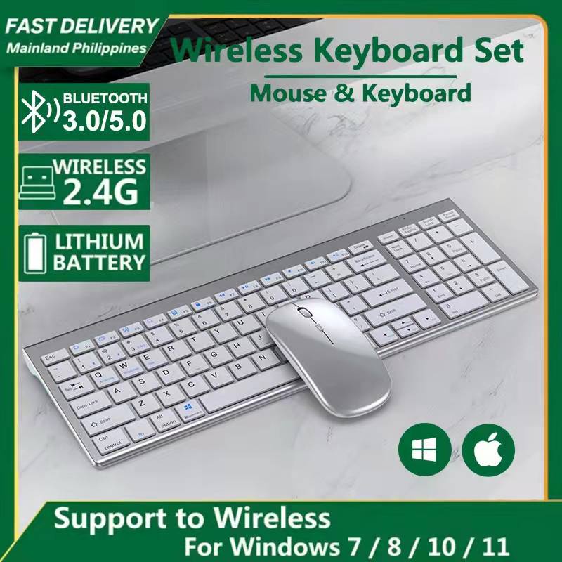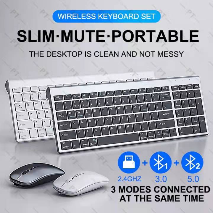 2.4G Wireless + Bluetooth Rechargeable Slim Keyboard And Rechargeable Mouse Set