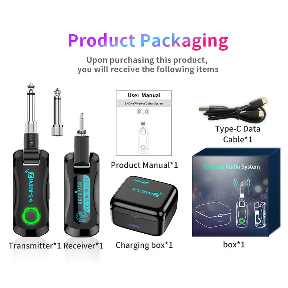2.4G Wireless Guitar System with Charging Case Rechargeable Wireless Guitar Transmitter Receiver for Electric Guitar Bass