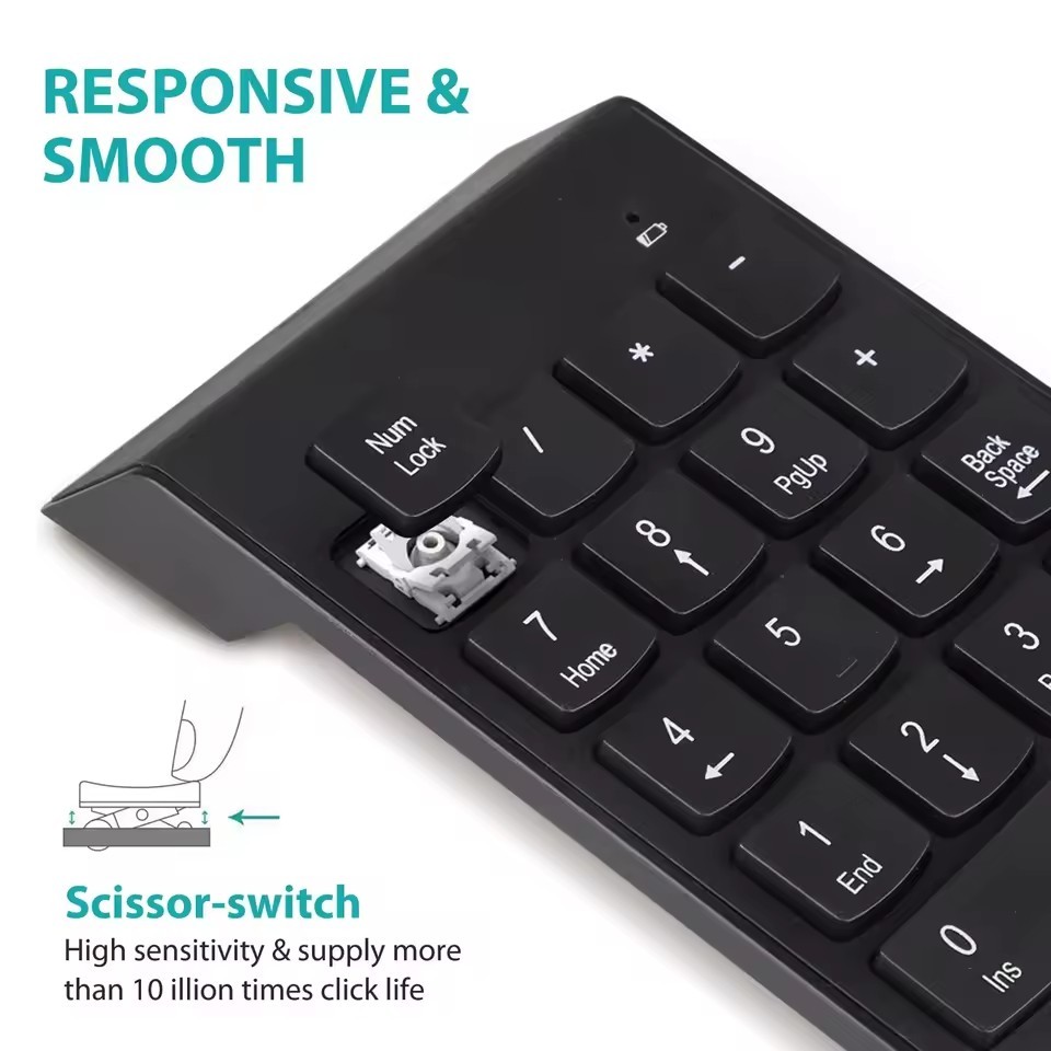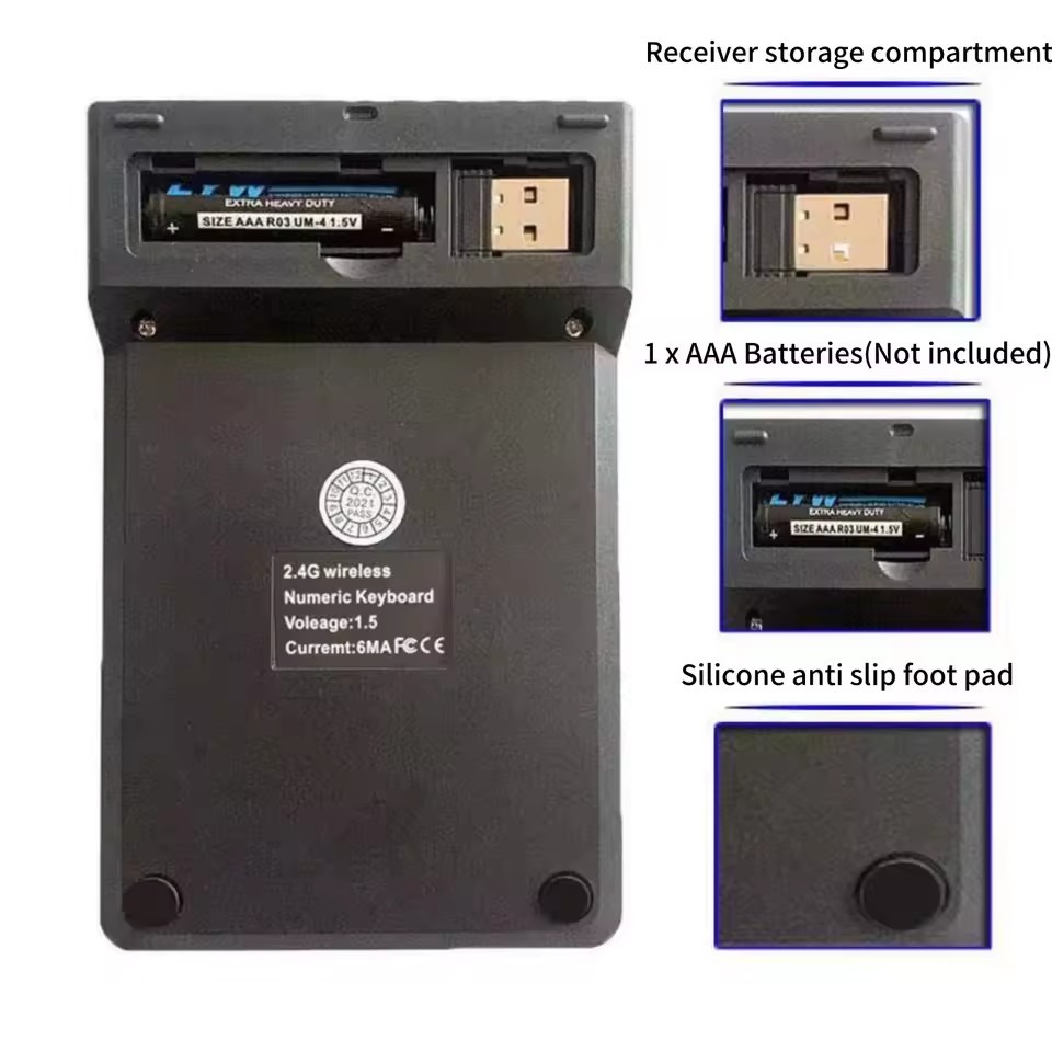 2.4GHz Wireless USB Number Keypad with Receiver Set for Laptop Desktop Accessories ABS Black 18 Keys