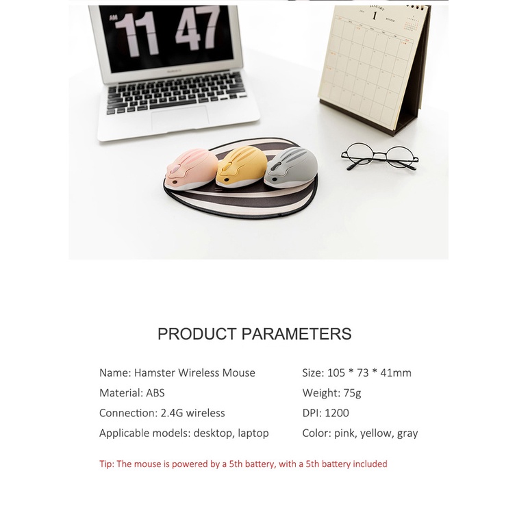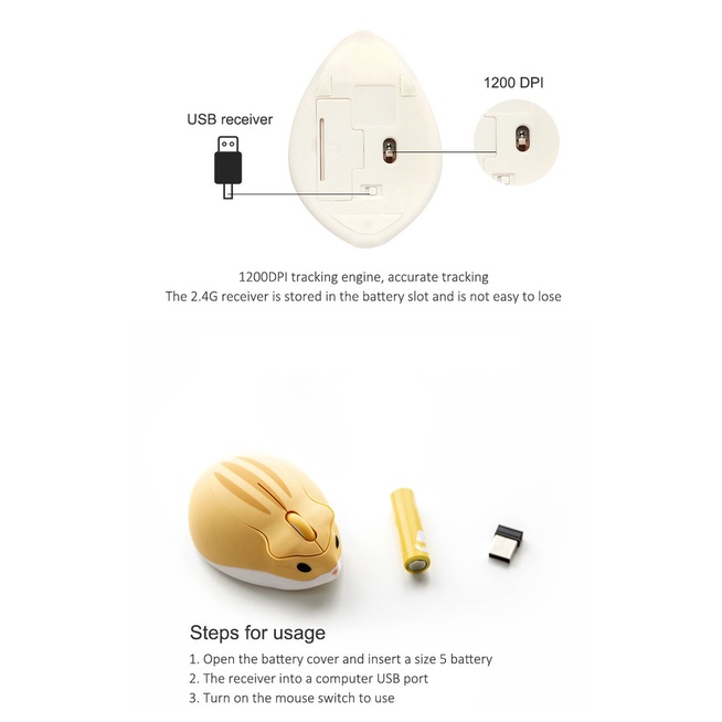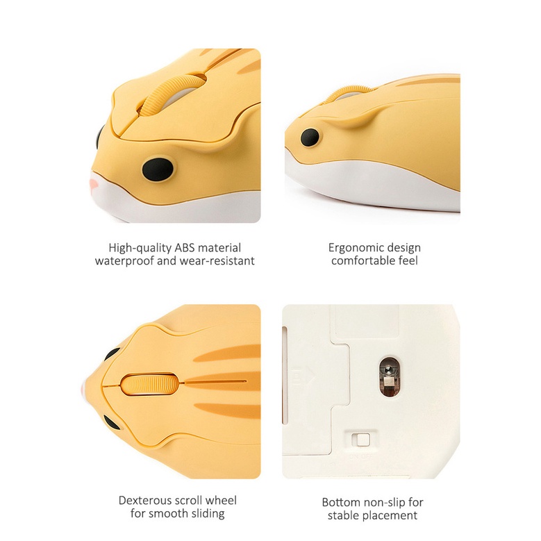2.4Ghz Silent Cordless Mouse Cute Cartoon Animal Wireless Mouse Ergonomic Optical Mini Mouse with USB Receiver 1200dpi Hamster Design Small Hand Mice Gaming 3D Mouse for Notebook