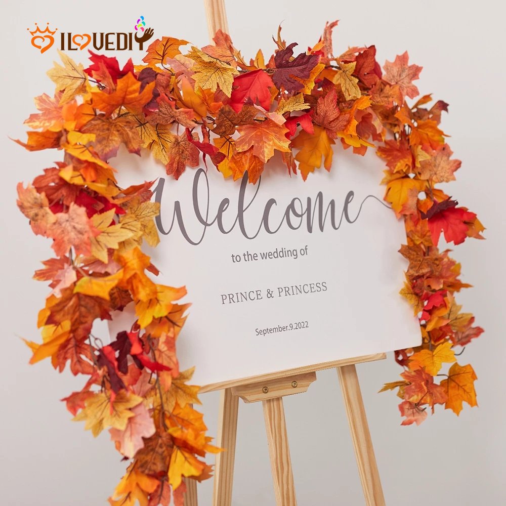 2.4m Simulation Maple Leaf String /Autumn Home Decoration Leaves Garland Artificial Maple Leaves Vine /Thanksgiving Wedding Party Halloween Decoration