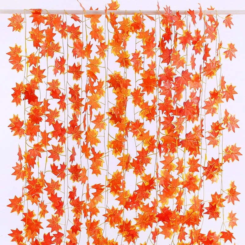 2.4m Simulation Maple Leaf String /Autumn Home Decoration Leaves Garland Artificial Maple Leaves Vine /Thanksgiving Wedding Party Halloween Decoration