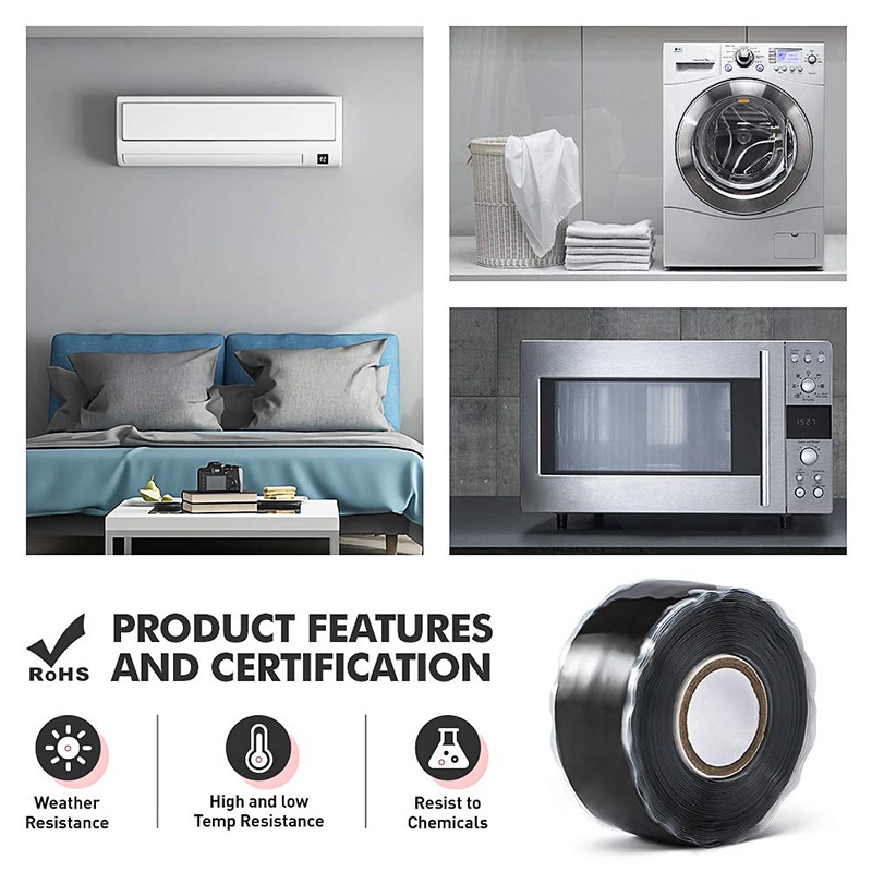 2.5*150cm Silicone Repair Tape Black Rubber Electrical Tape Multi-Use Silicone Rubber Tape