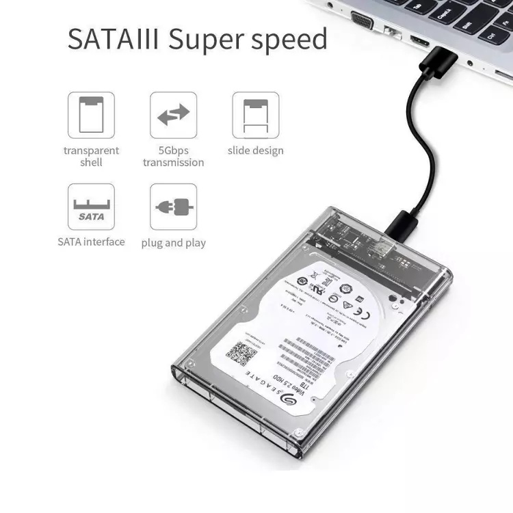 2.5 HDD/SSD Enclosure, Type-C USB3.1, High-Speed 5Gbps for SATA Drives