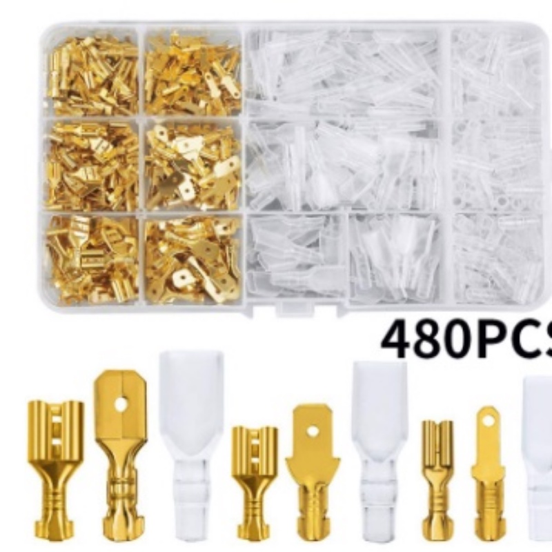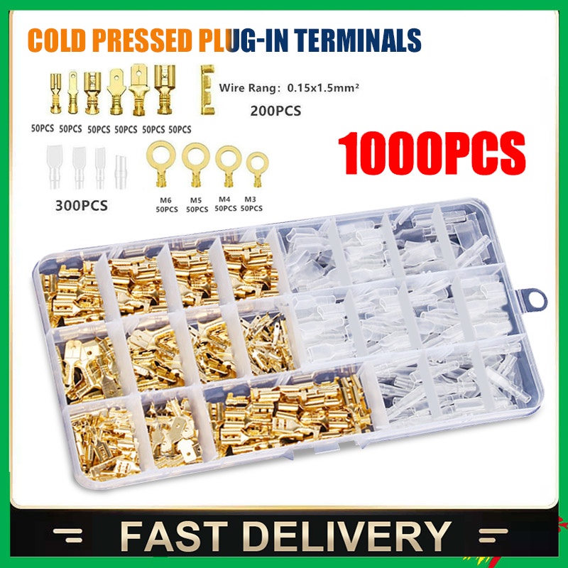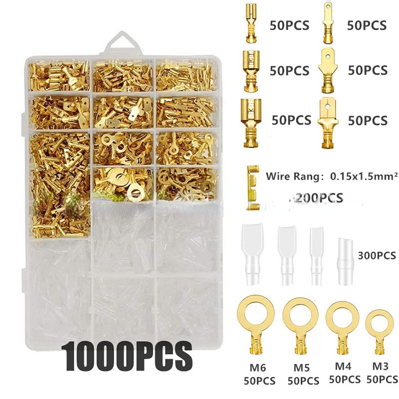 2.8/4.8/6.3mm Crimp Terminals 1000pcs Cold Compression Spring Insert Kit Quick Connector Male and Female Connectors Electrical Wire Spade Connector Insulated Sleeves Kit