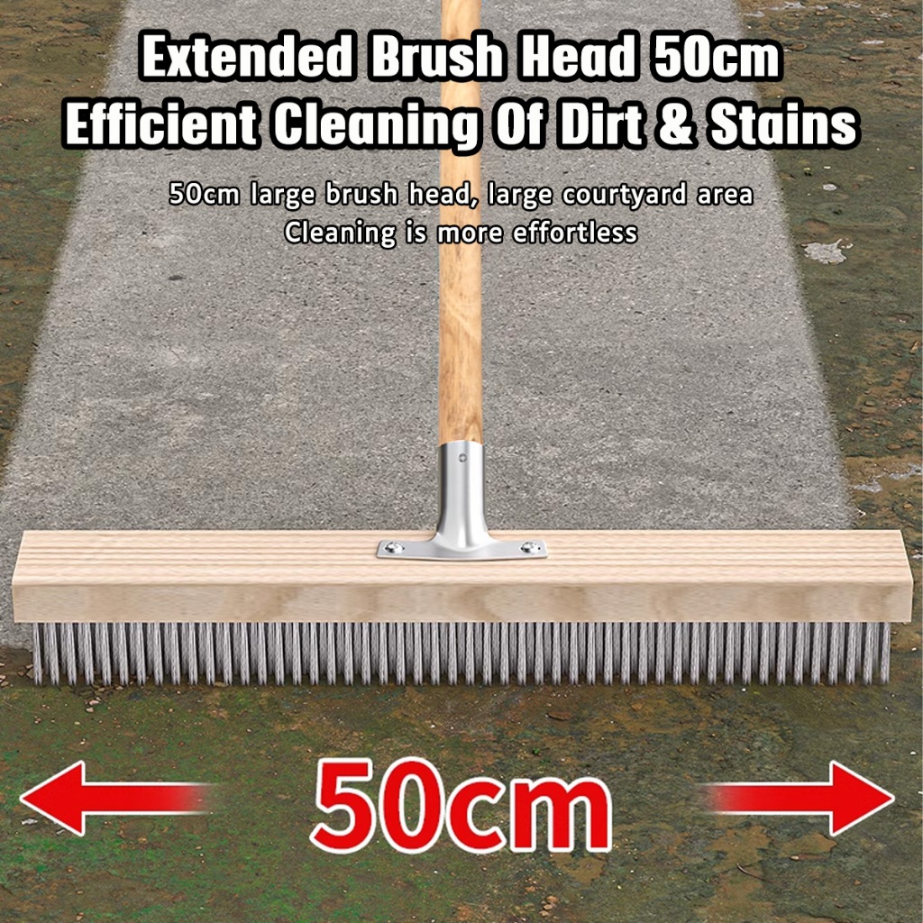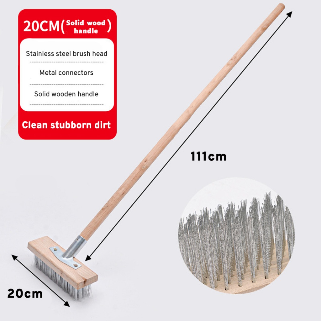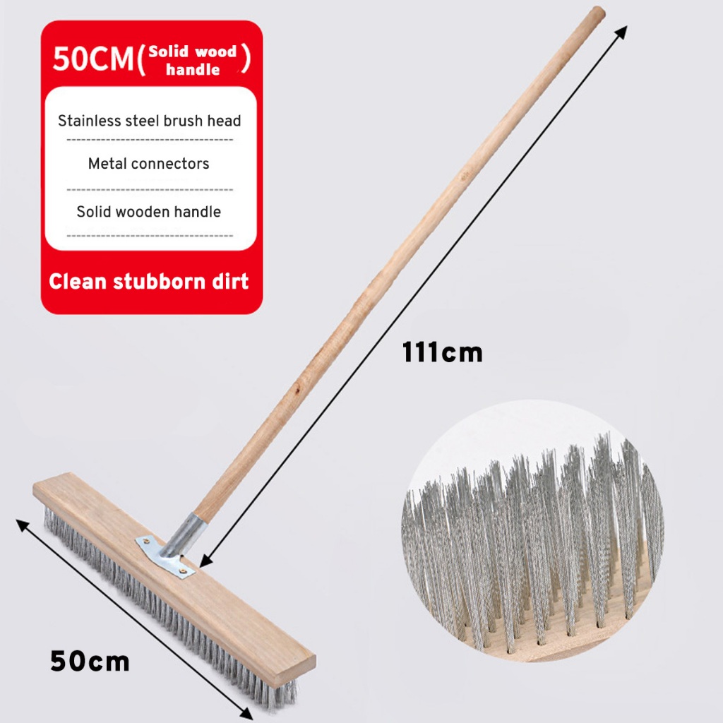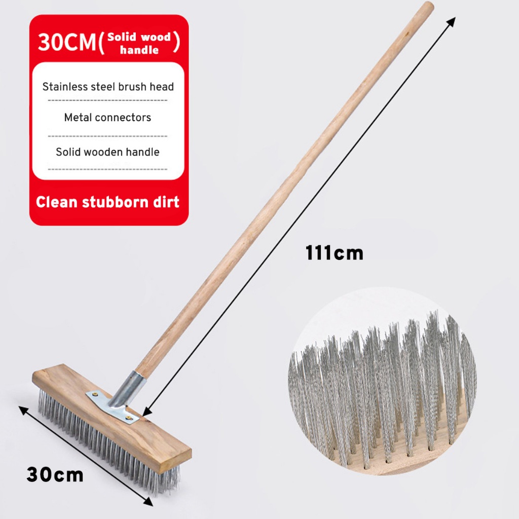 20/30/50cm Stainless Steel Wire Floor Brush With Wood Handle Stiff Bristle Brush for Moss Garden