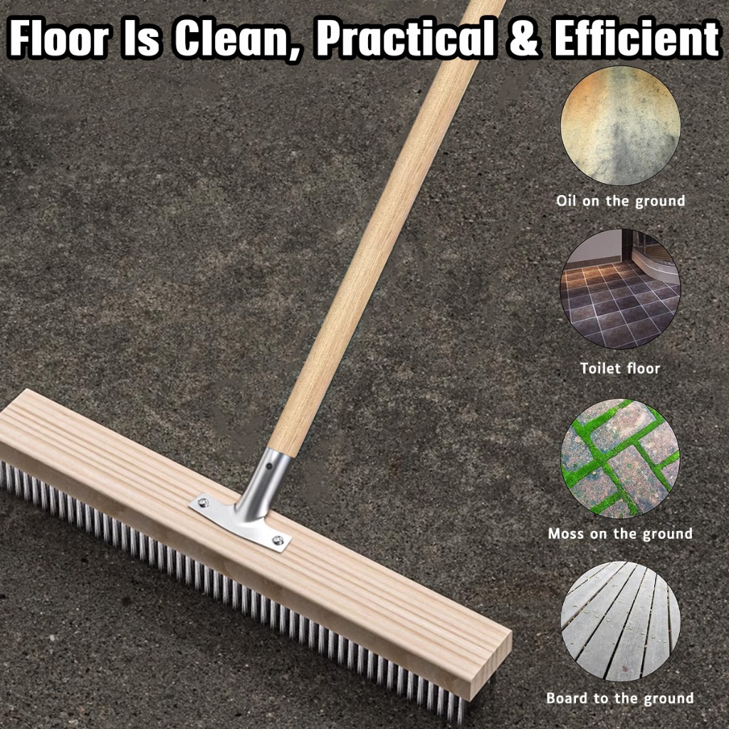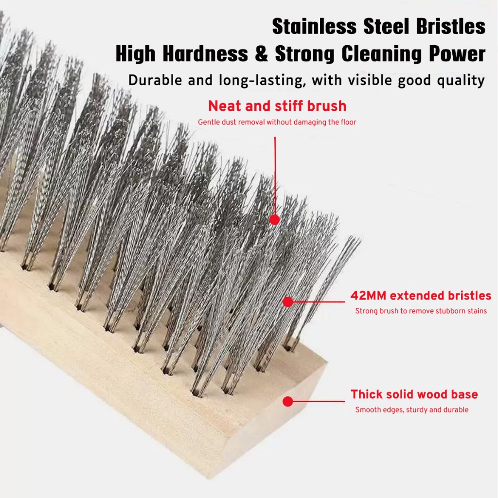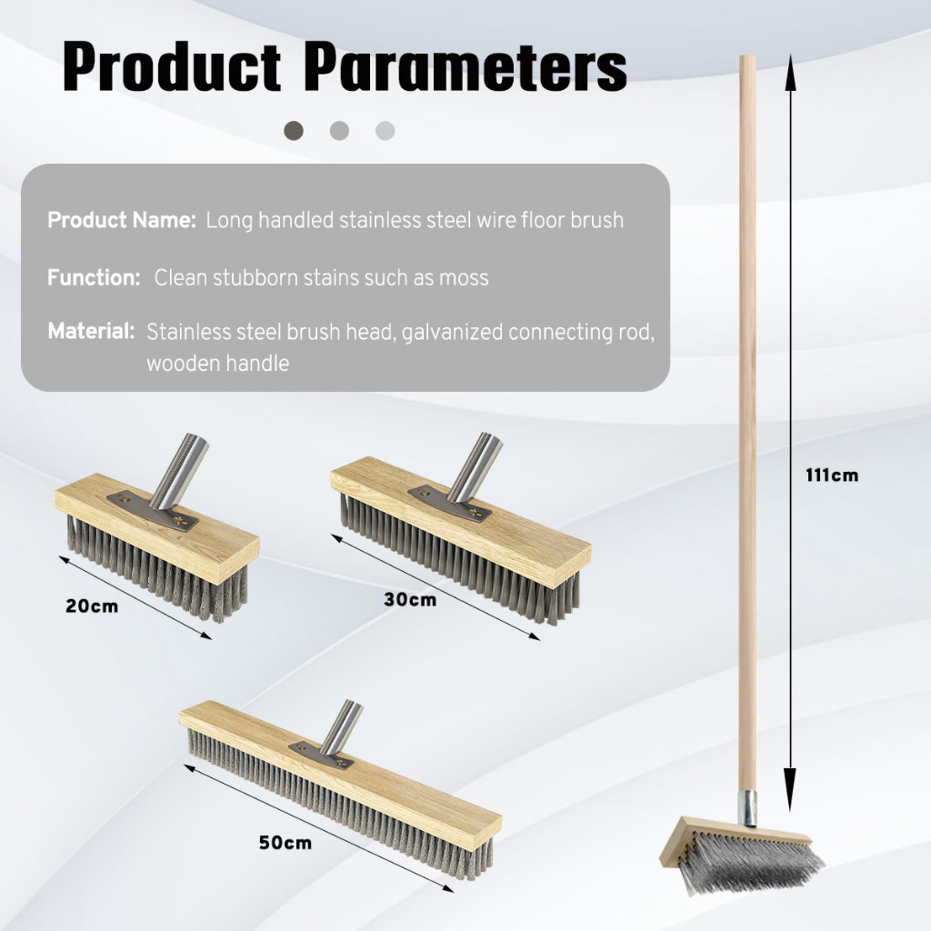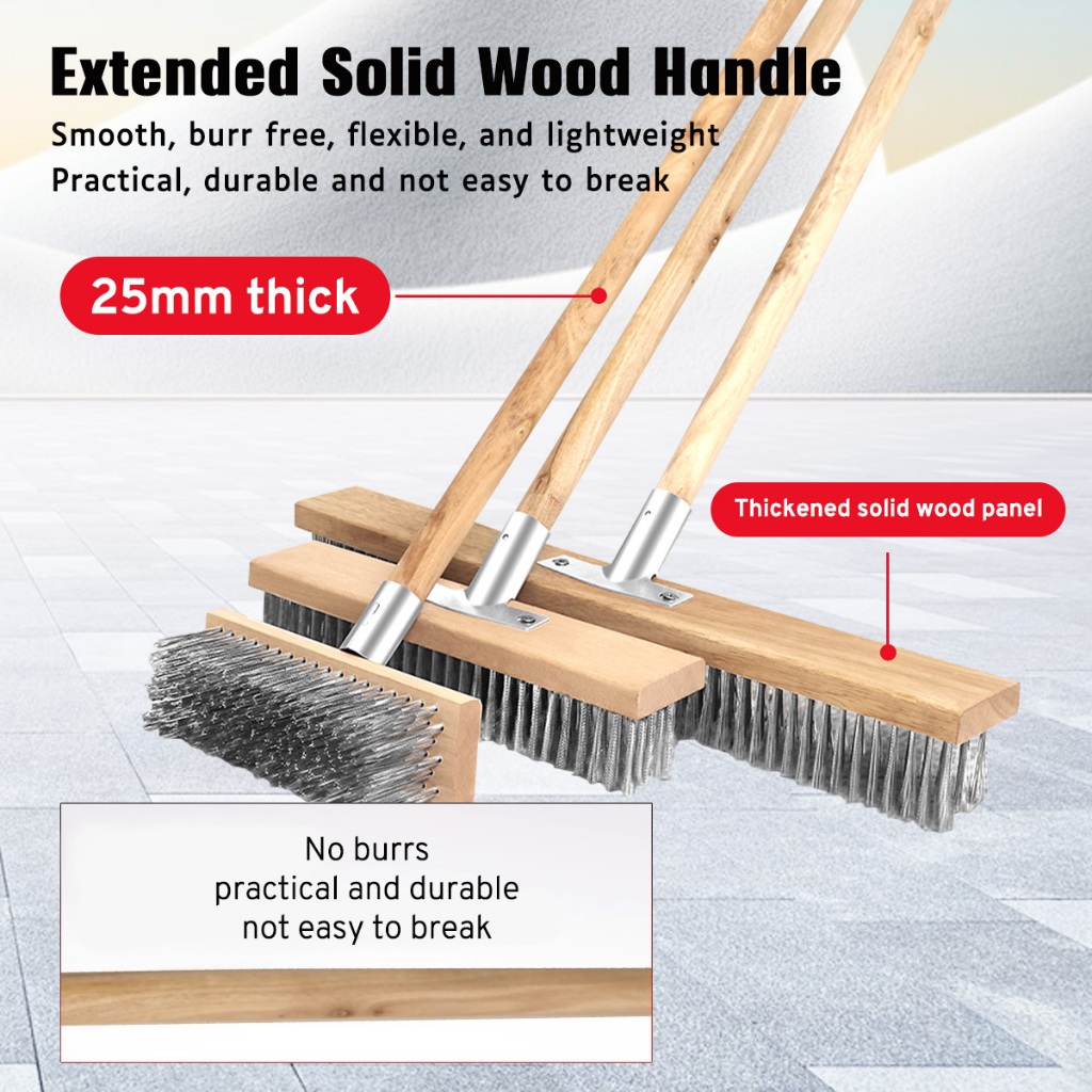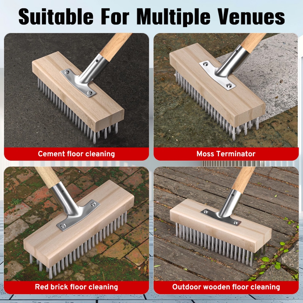 20/30/50cm Stainless Steel Wire Floor Brush With Wood Handle Stiff Bristle Brush for Moss Garden
