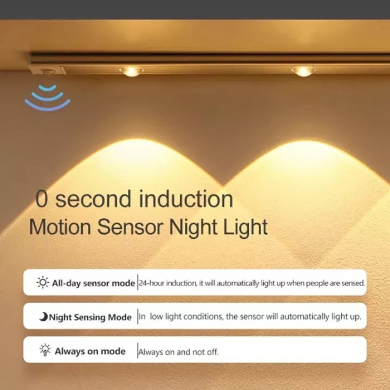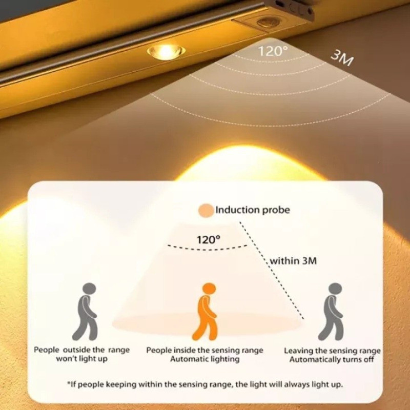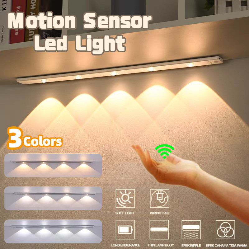 20/40/60CM 3-Color Motion Sensor Led Light Strip Magnetic Rechargeabe Night Light Bedroom Kitchen