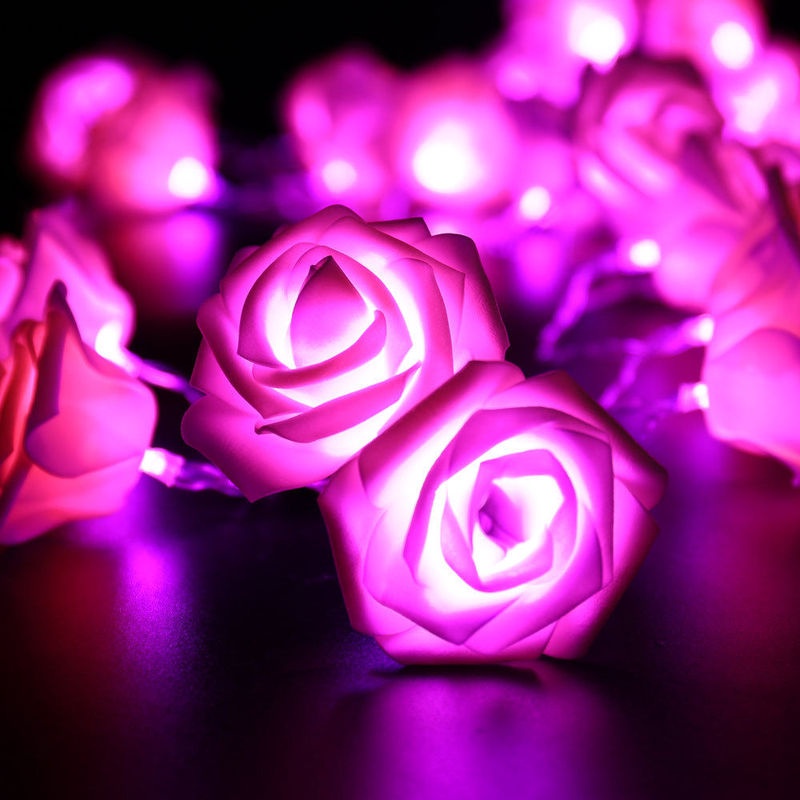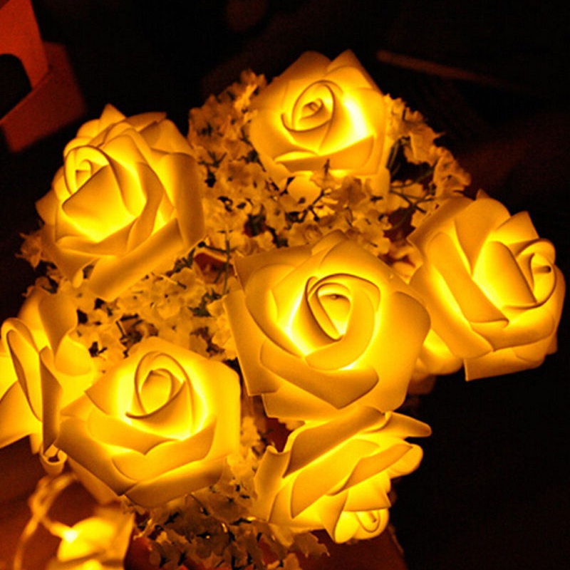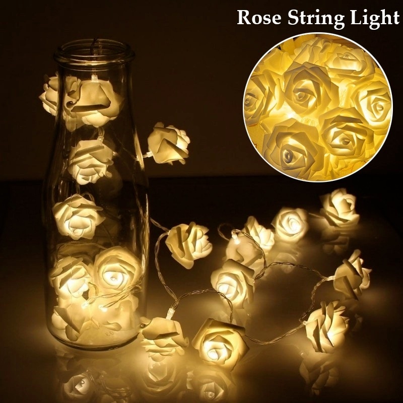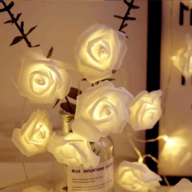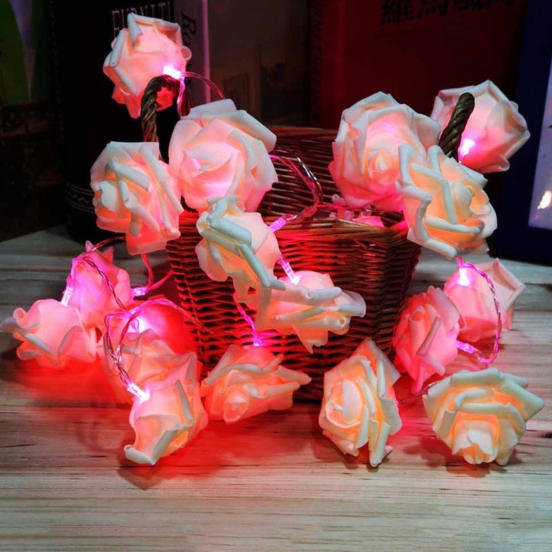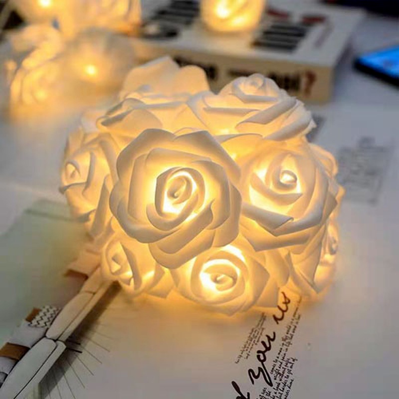 20 LEDs Rose Flower Fairy String Lights Battery Powered Artificial Floral Lamp for Wedding Valentine's Day Party Garland Decor