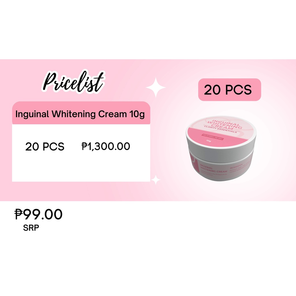 20 PCS INGUINAL WHITENING CREAM 10G | CLARITY ESSENTIALS