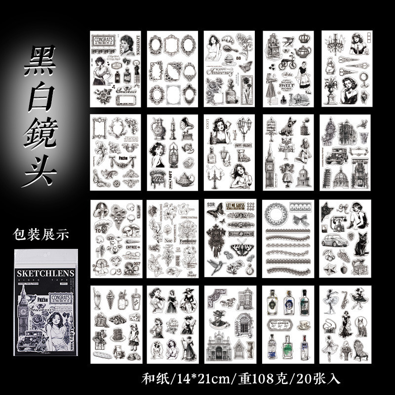 20 Pcs Washi Stickers Vintage Aesthetic Sticker Book for Journaling Decorative Paper Sticker Decals for Scrapbooking Junk Journal Diary Album