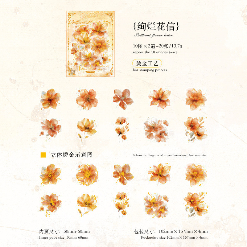 20 Pcs/pack Gold Foil Rose Floral Stickers Transparent Aesthetics Sticker Set Vintage Scrapbooking Stickers for Card Making Envelope Gift Wrapping Journaling