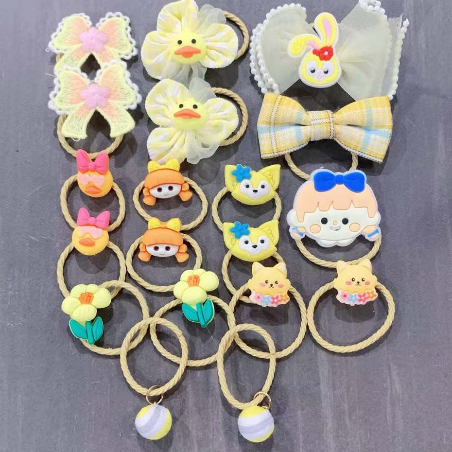 "20 pcs set of cute kids' hair accessories, featuring adorable bows and colorful designs,