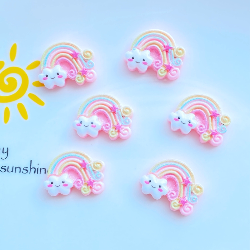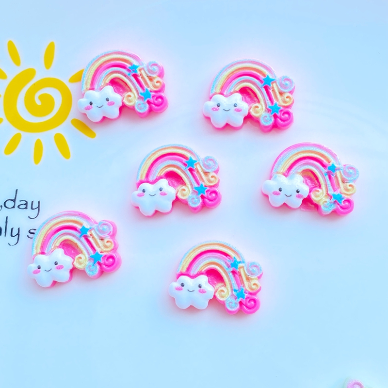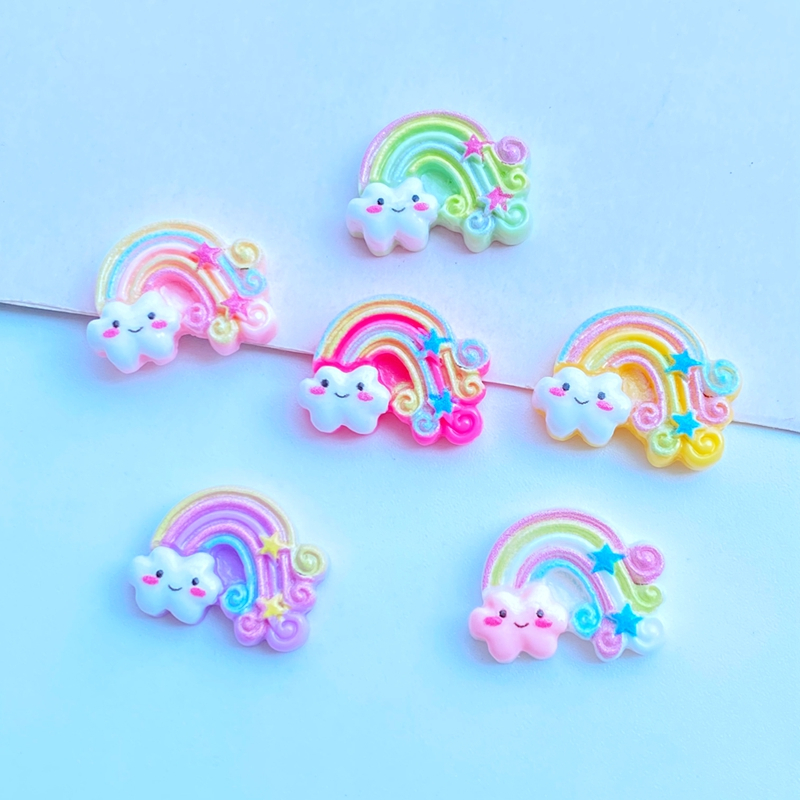 20 Pieces Mini Color Rainbow Resin Statue Craft Flat Back Convex Round Decoration Jewelry Making Hair Accessories