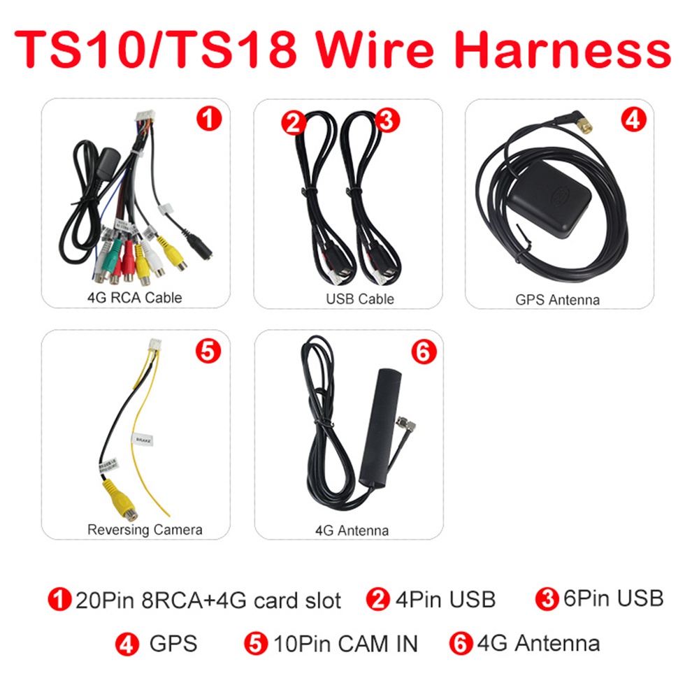 20 Pin Plug for Android Car Stereo Radio 10Pin RCA Output AUX USB Wire Harness Connector Adaptor cable 4G SIM card slot Antenna