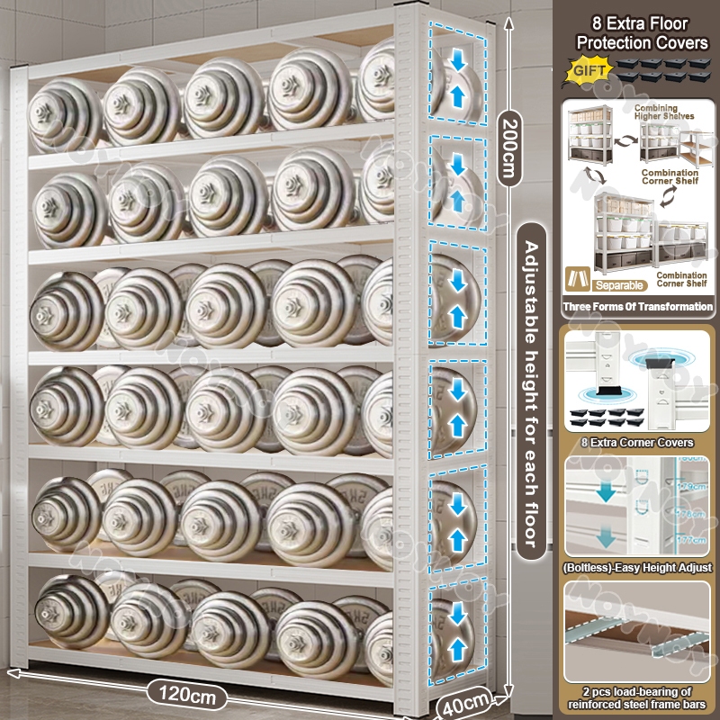 200*200 Full Metal Rack Steel Shelf Rack 6 Layer Stainless Rack Steel Rack Shelves Rack Organizer