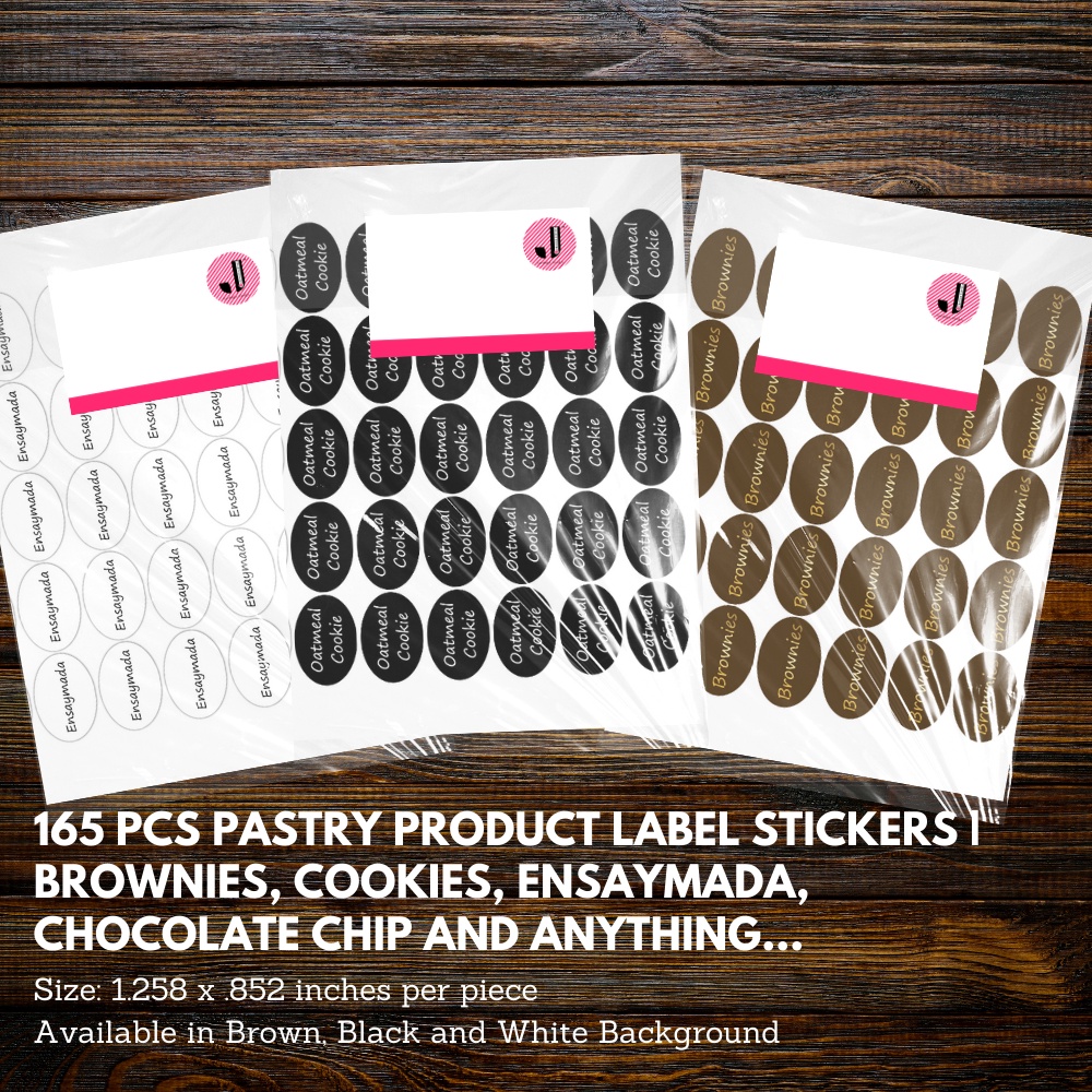 200 PCS PASTRY PRODUCT LABEL STICKERS| BROWNIE, COOKIES, ENSAYMADA, CHOCOLATE CHIP