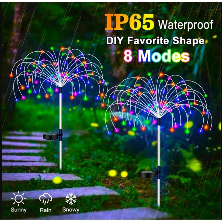 200LED Waterproof Solar Garden Light Firework Light 8 Mode Outdoor Garden Decor Christmas Lights