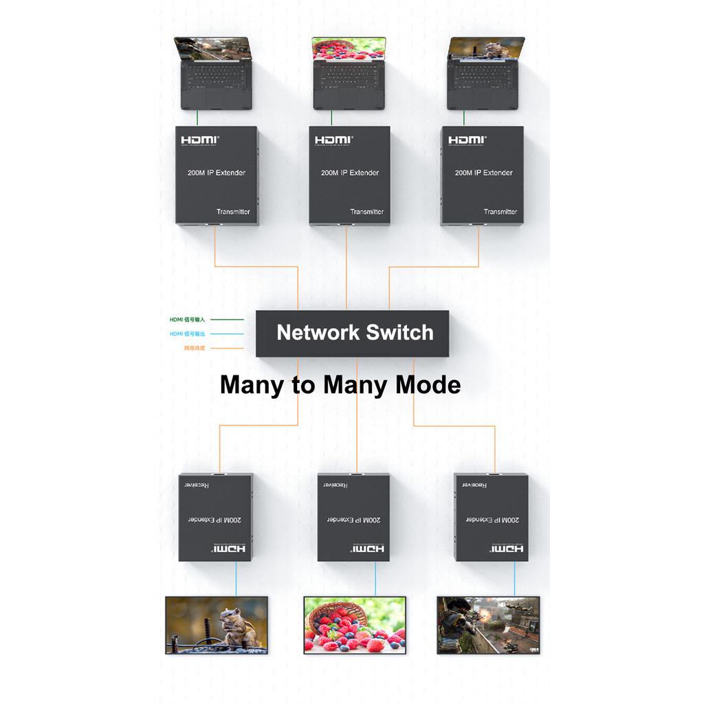200M HDMI IP Extender HDMI Ethernet Cable Extender Over Cat5e Cat6 Network Cable Support Many TXs To Many RXs Display 1080P 60Hz for Camera Laptop PC To TV Monitor