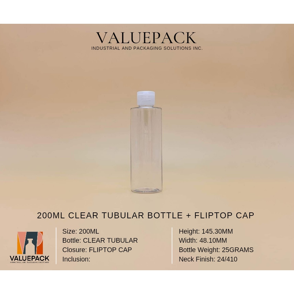 200ML CLEAR TUBULAR PET + CLOSURES