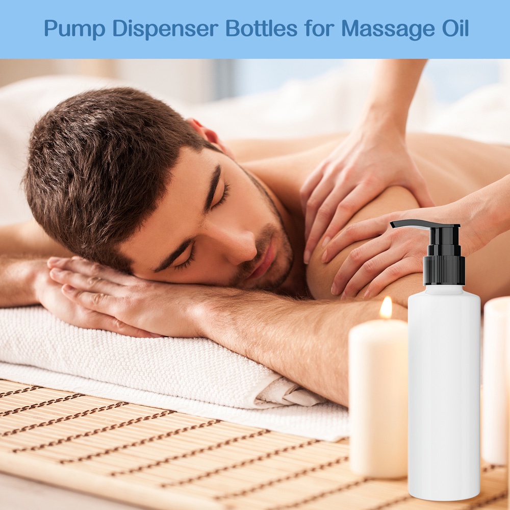 200ML Refillable Plastic Pump Dispenser Bottles for Lotion, Massage Oil, Shampoo and More BPA/Latex Free