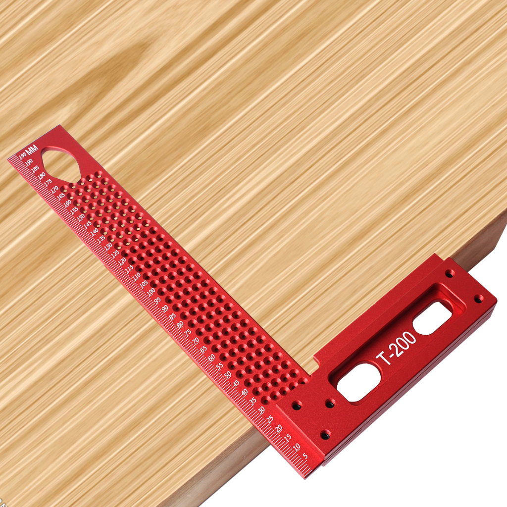 200MM Precision Scale Ruler L-Type Hole Ruler Aluminum alloy Woodworking Scribing Mark Line Gauge Carpenter Scribe MeasuringTool