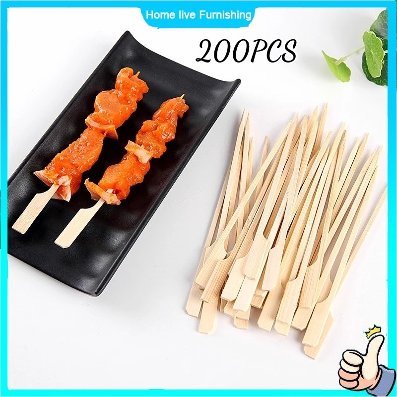 200PCS Bamboo Skewers BBQ Stick With Handle Burger Skewers Kebab Stick Barbeque Burger Fruits Accessory 15cm