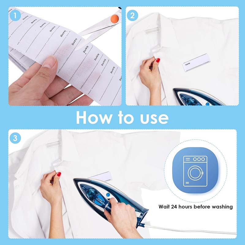 200Pcs Writable Iron on Clothing Label School Name Tags Tapes Name Label