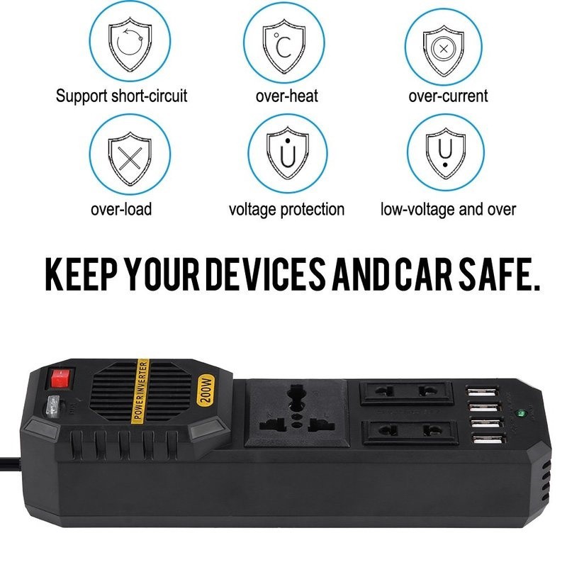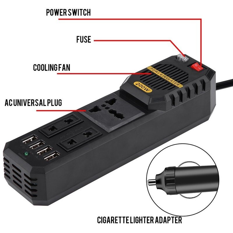 200W Power Car Cigarette Inverter 12 V To 220 Volt DC To AC Converter 4 USB 3.1A Charger Wave