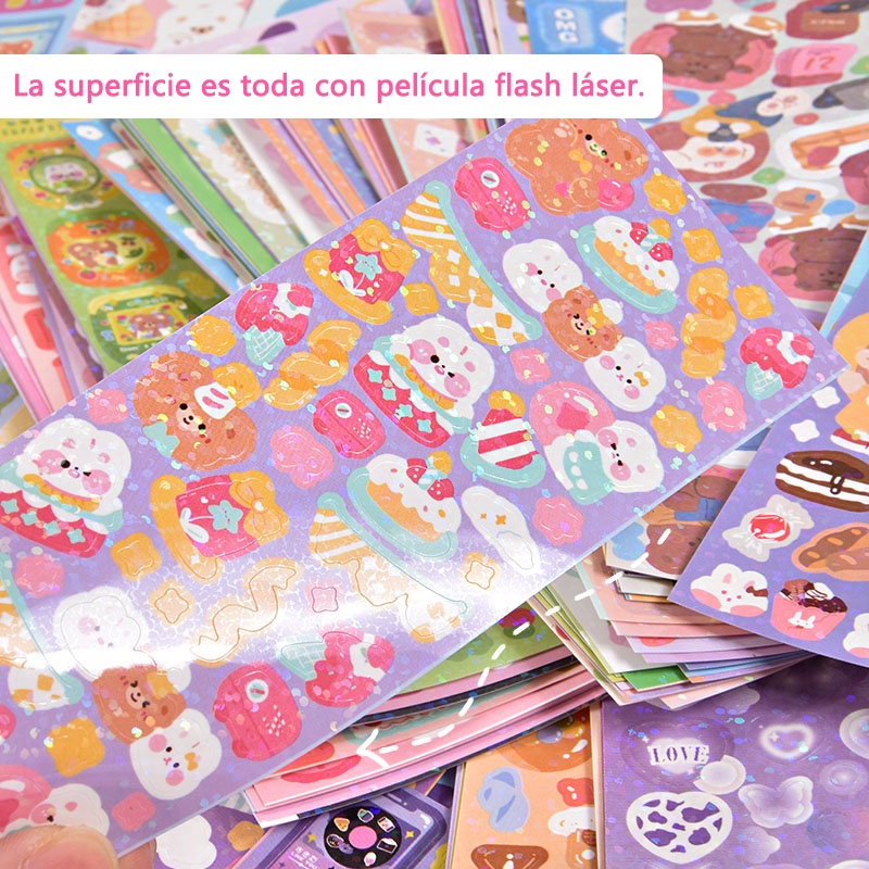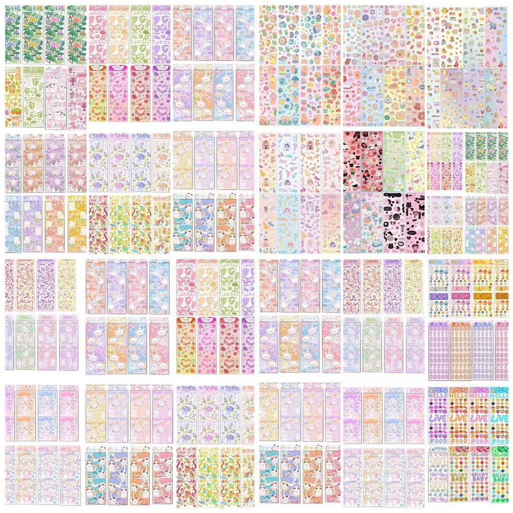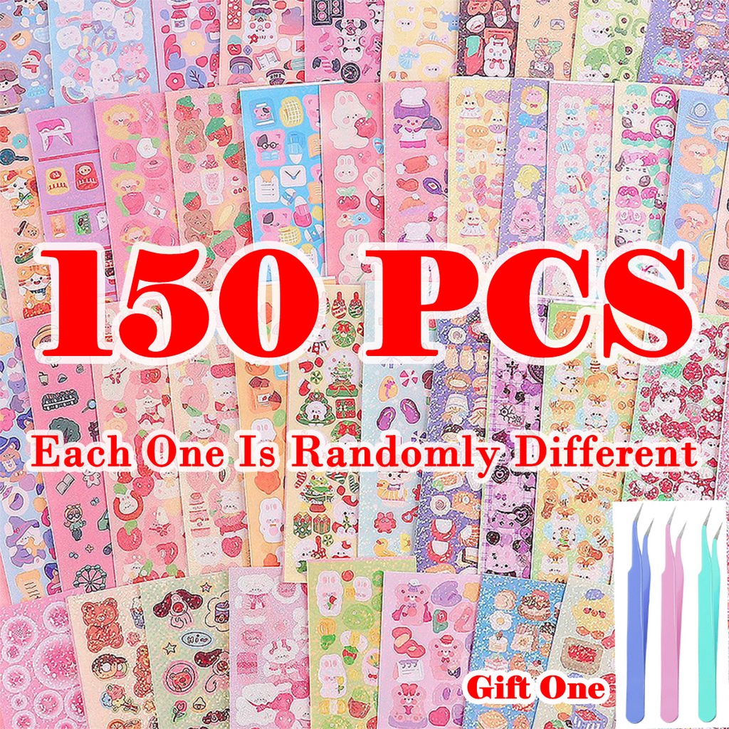 200pcs Cute Stickers Goo Goo Card Set Free Tweezers Kawaii Cartoon Laser Stickers for Kids DIY Decorative Stationery