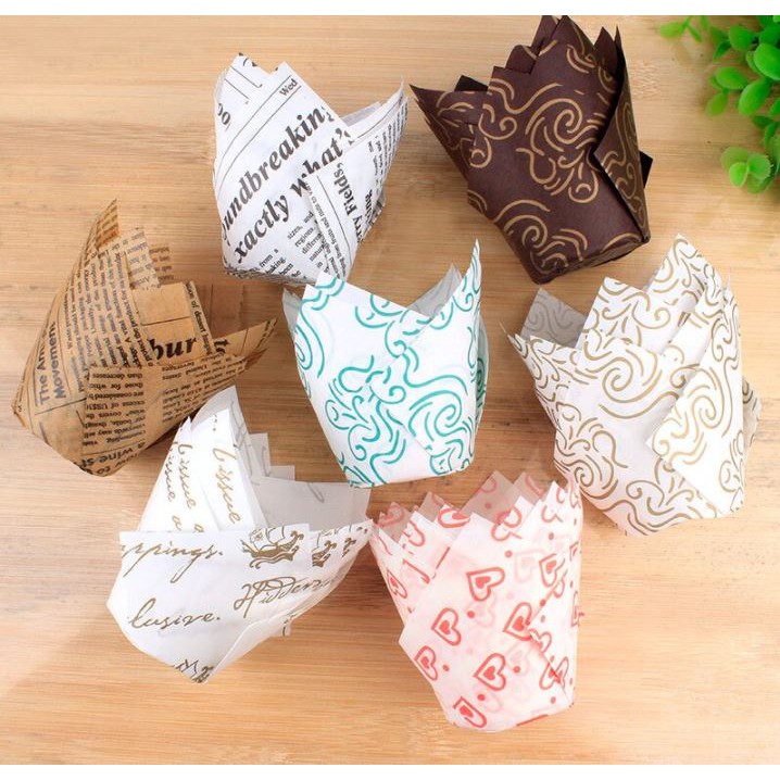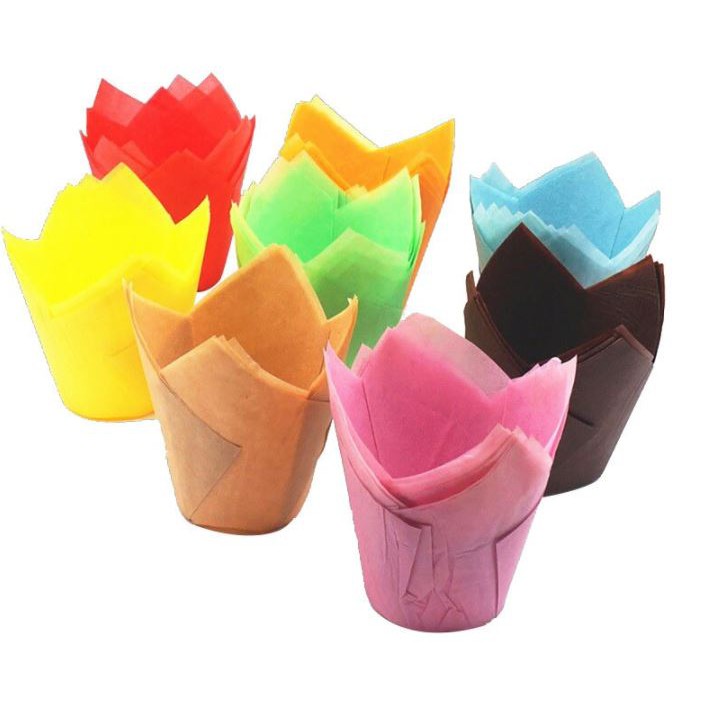 200pcs PH Based Tulips Paper Cups, Tulips Cupcake Liner Easy Release Muffin Cups Baking Paper Cup
