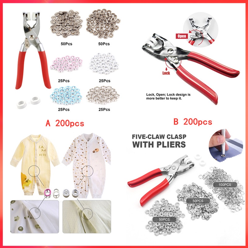 200pcs Snap Pliers Fastener Press Stud Button Fixing Tool Sewing Craft Kit Setter