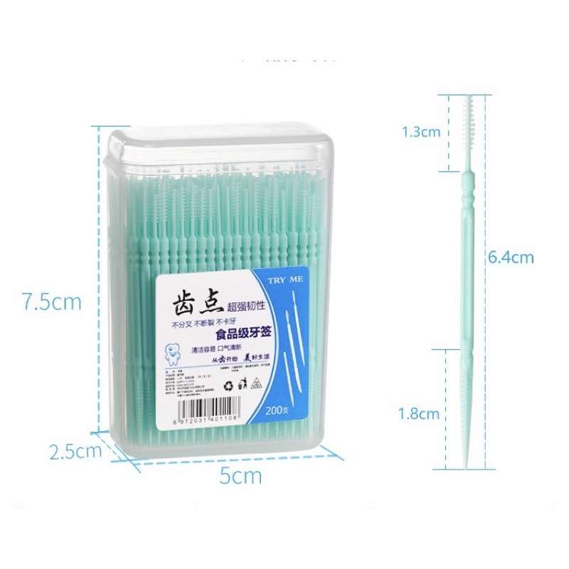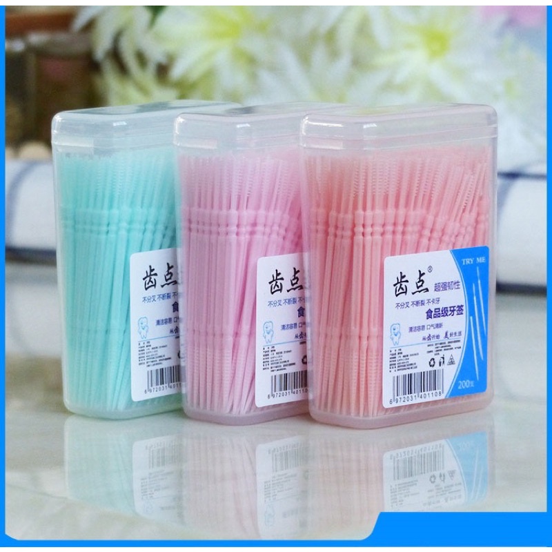 200pcs/can Food grade plastic portable toothpicks Disposable Interdental Cleaning Toothpicks