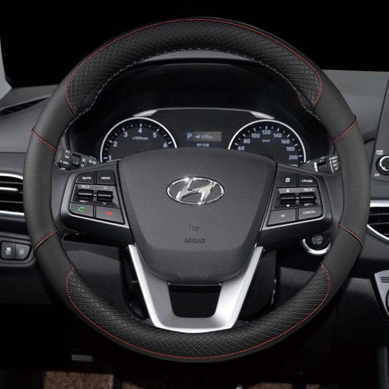2021 High Quality Model Hyundai Steering Wheel Cover Avante Accent Veloster Vent Verna Visor Getz Azer Elantra Leather car steering wheel cover